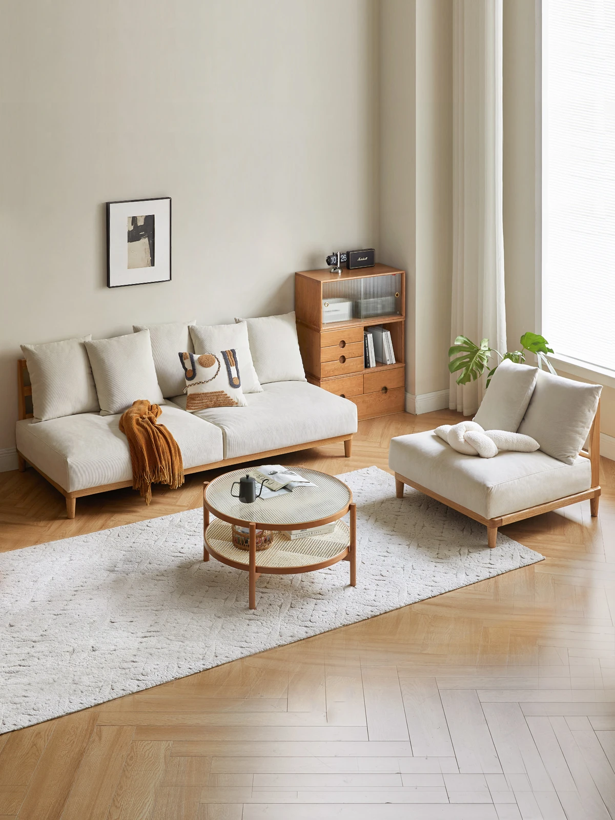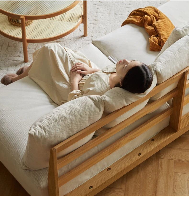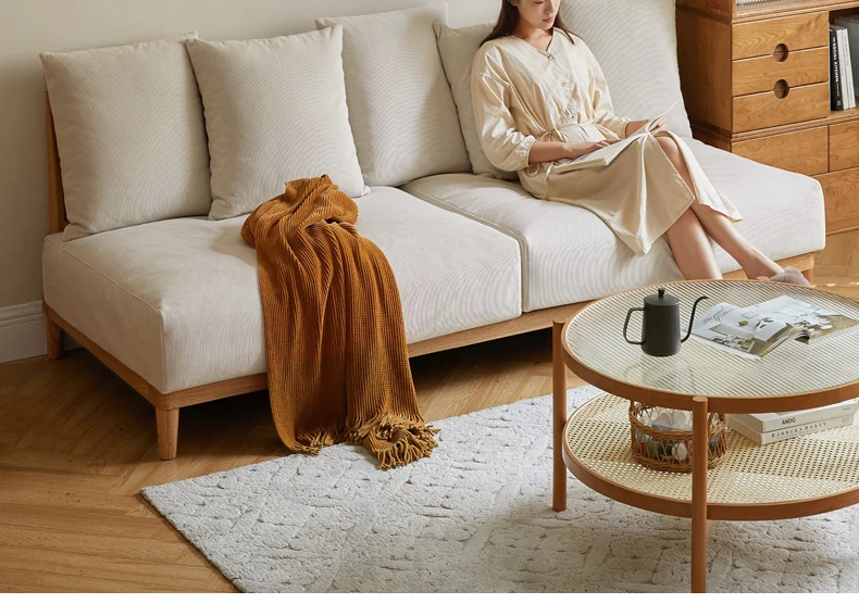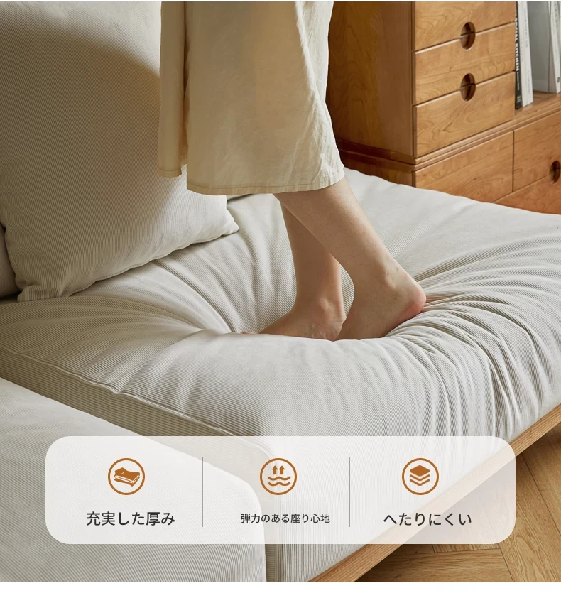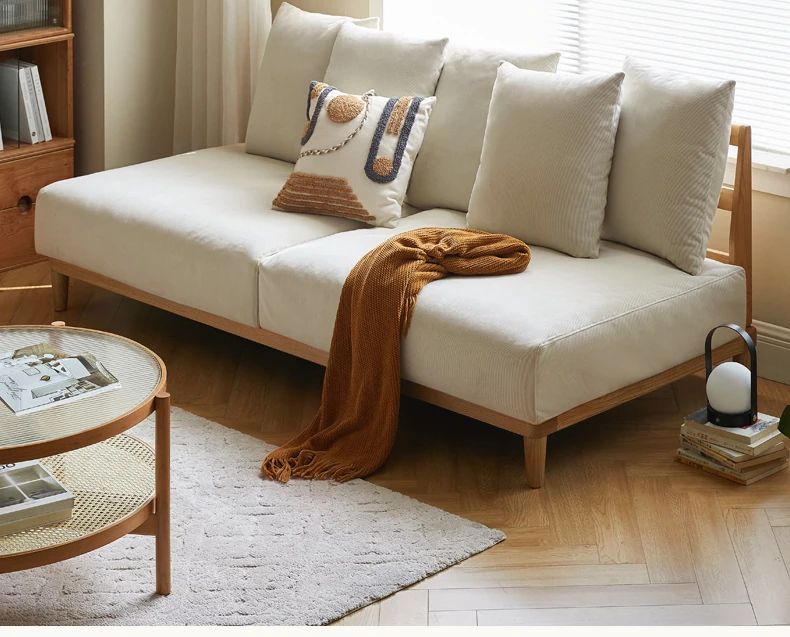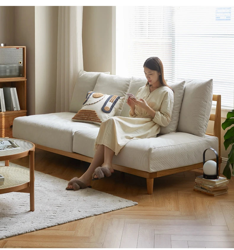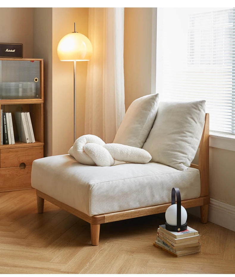 【魅力の一人掛け】天然木使用のVISSAモダン北欧風オーク製ソファー - 小さなリビングに最適な布張りアームレスデザイン!