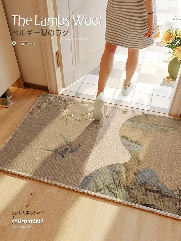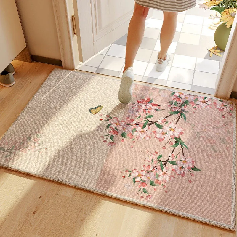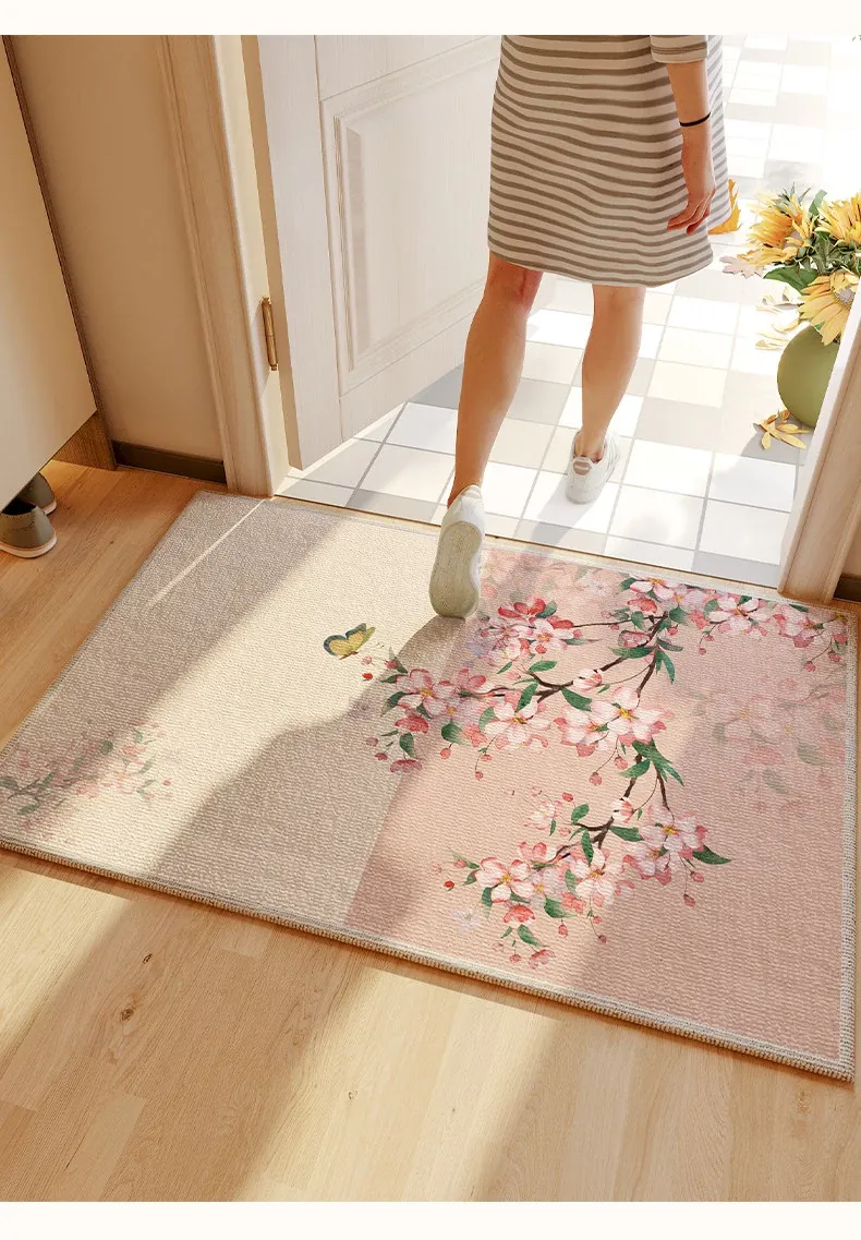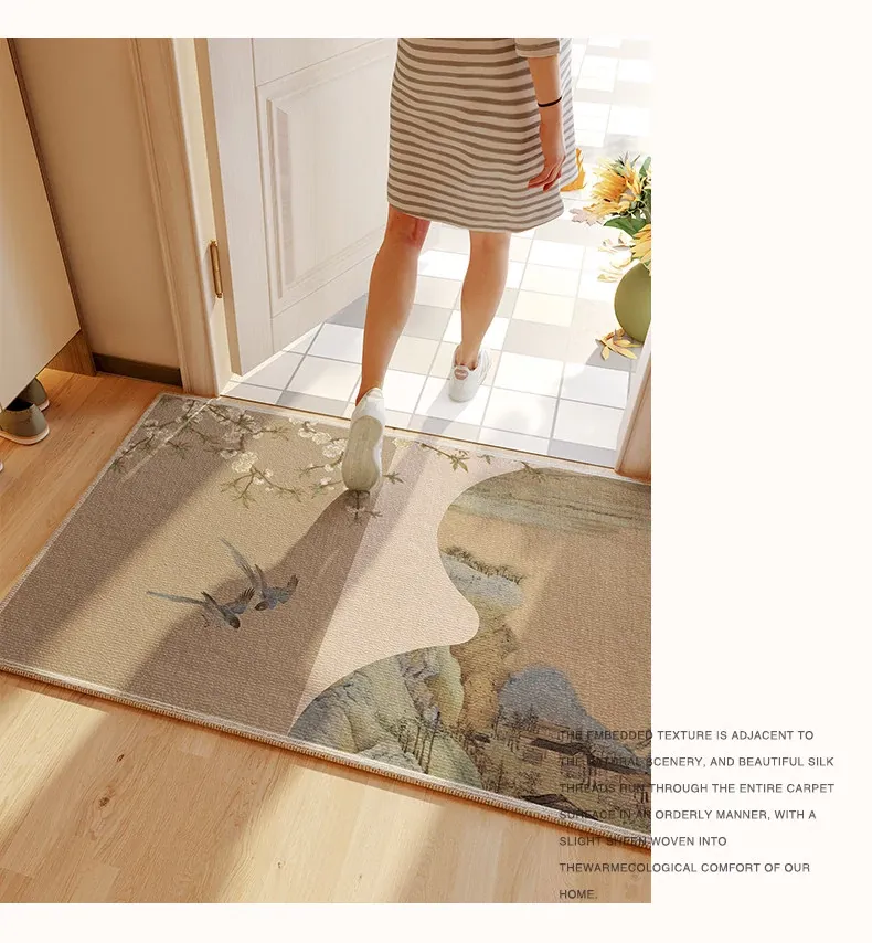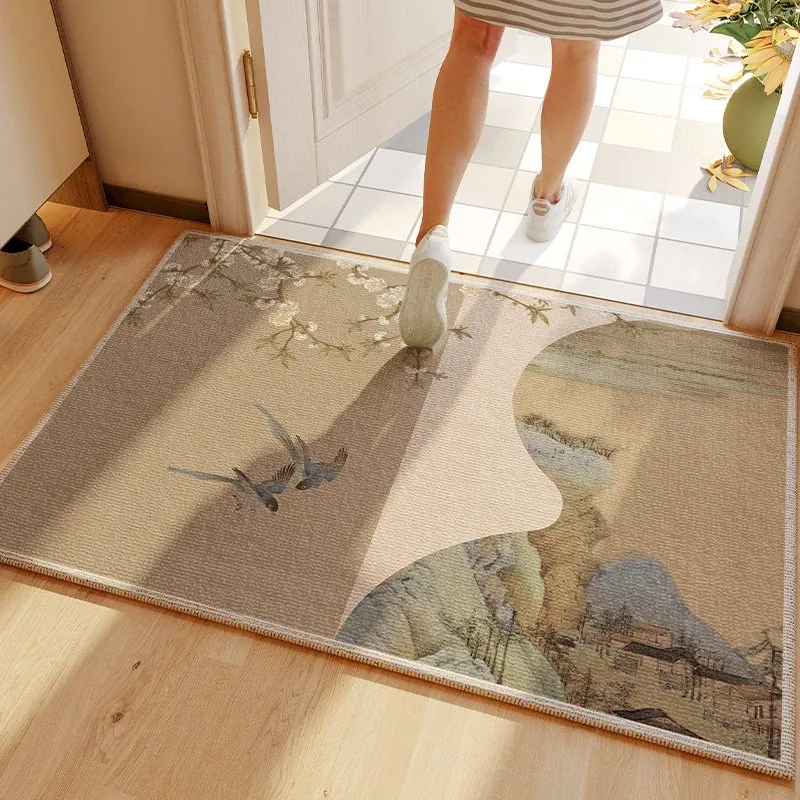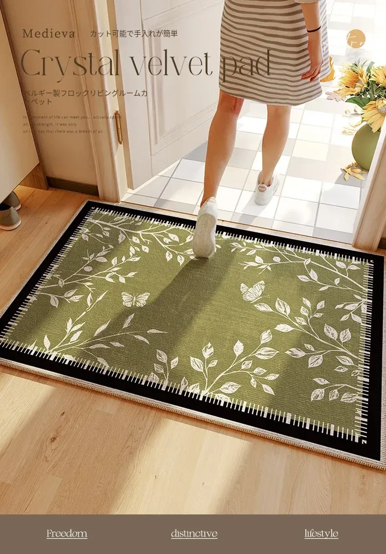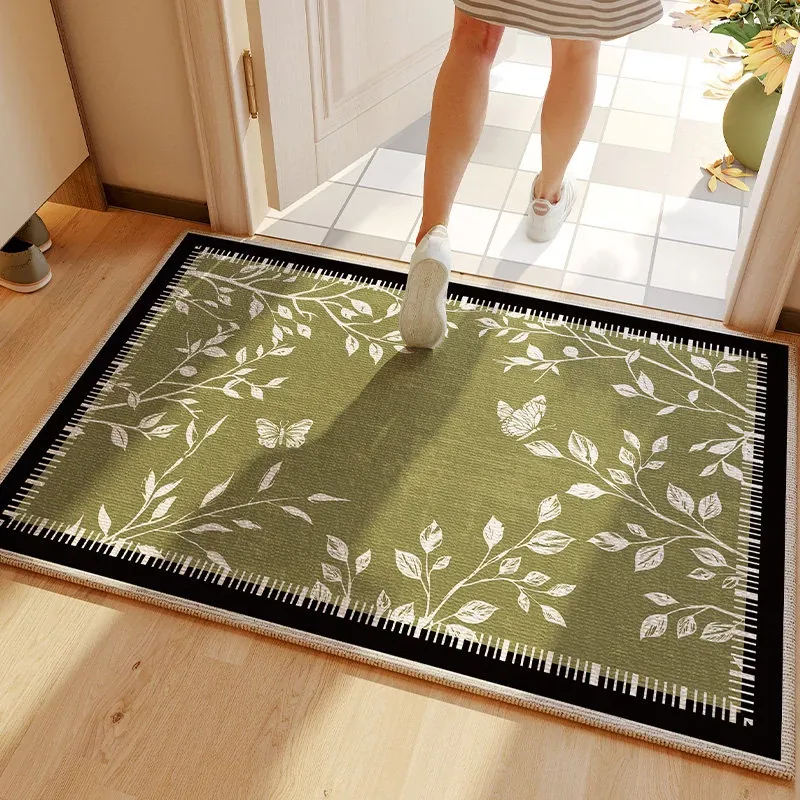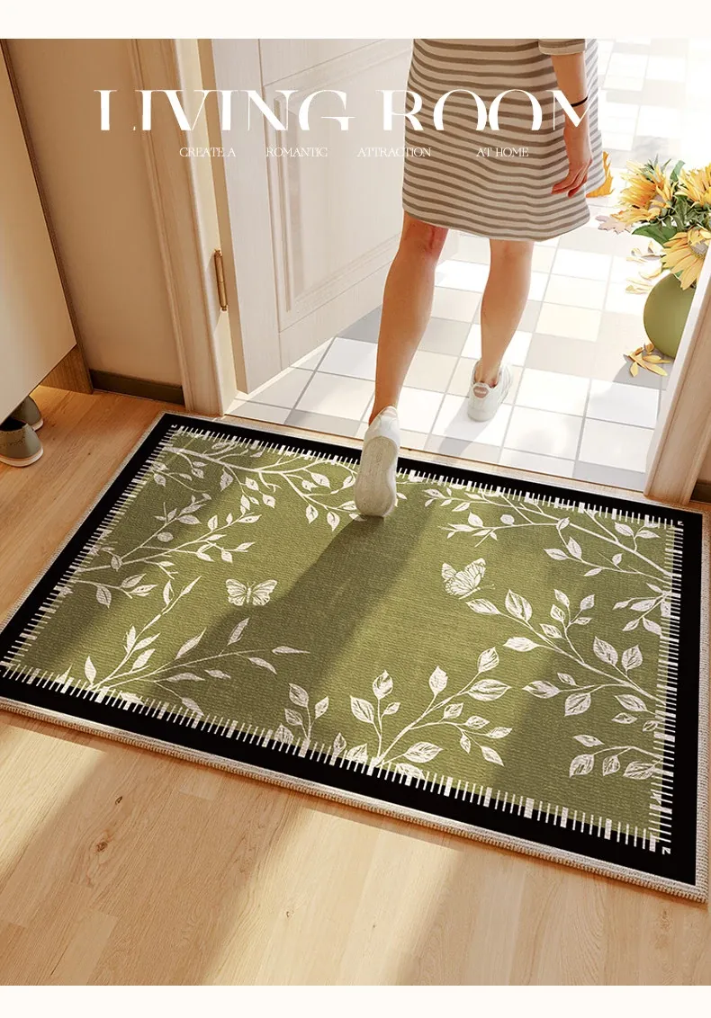 ヴィンテージ風グリーンエントランスマット - 高級感溢れる入室マット、カット可能な滑り止め玄関マットで、スタイリッシュな印象を演出します。おしゃれで実用的な一品をお見逃しなく!