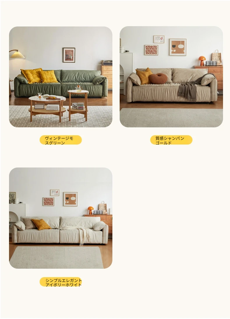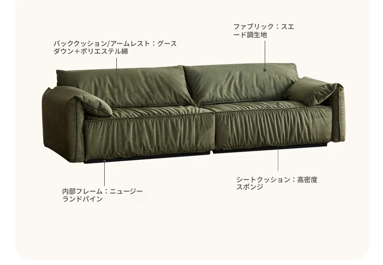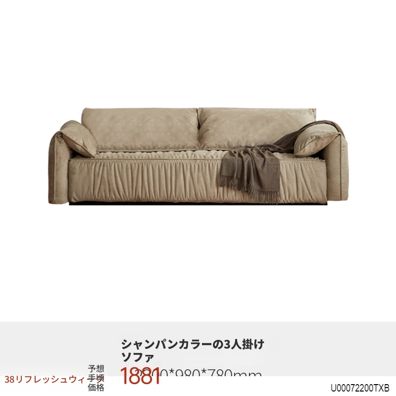 2.2m三人掛け(ヌバックシャンパンカラー)(2200*980*780mm)