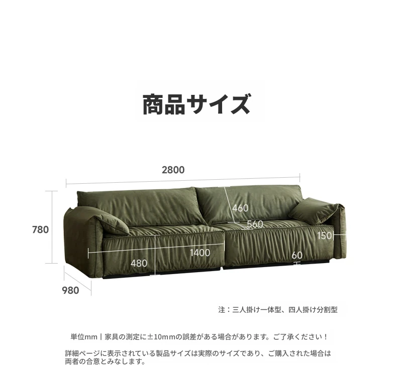 2.8m四人掛け(ヌバックダークグリーン)(2800*980*780mm)