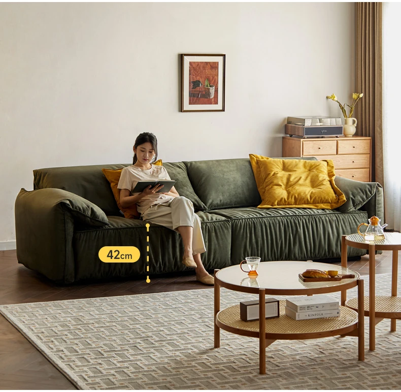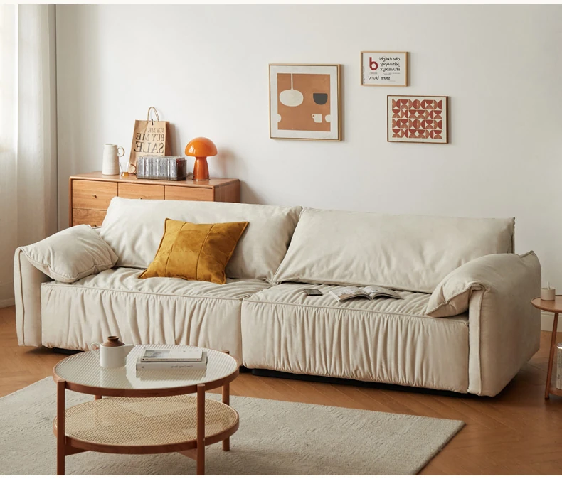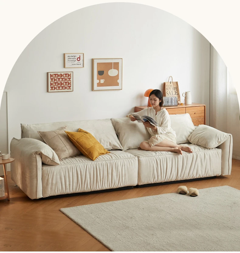 【魅力家居】ヴィサ布ファブリックソファー - イタリア風の軽奢小型リビング用リラックスソファ!スエード調で、家で象の耳のような快適な寛ぎを。