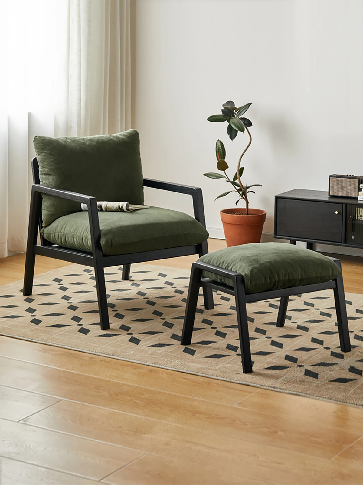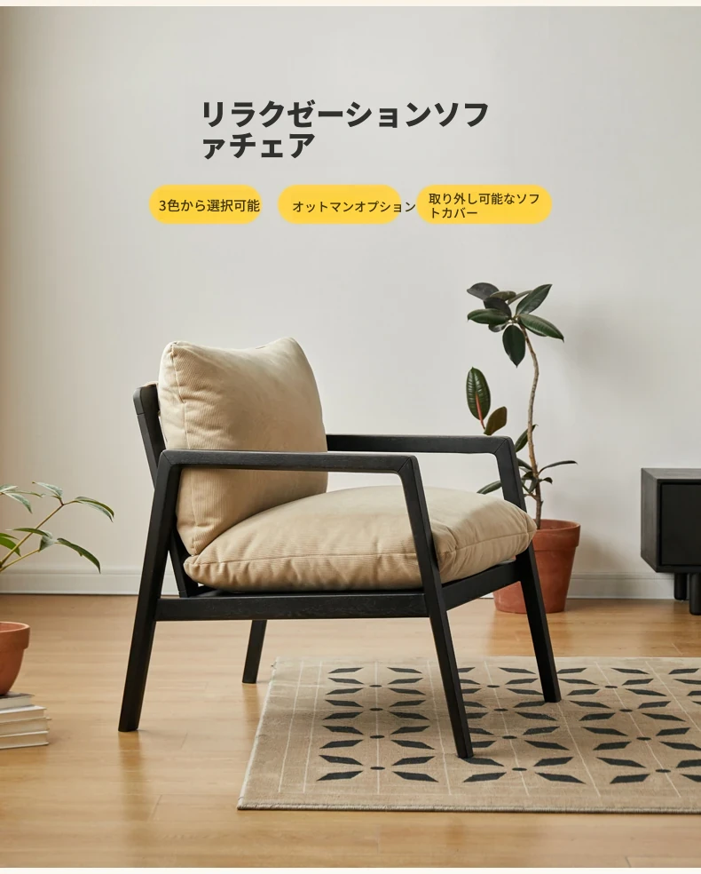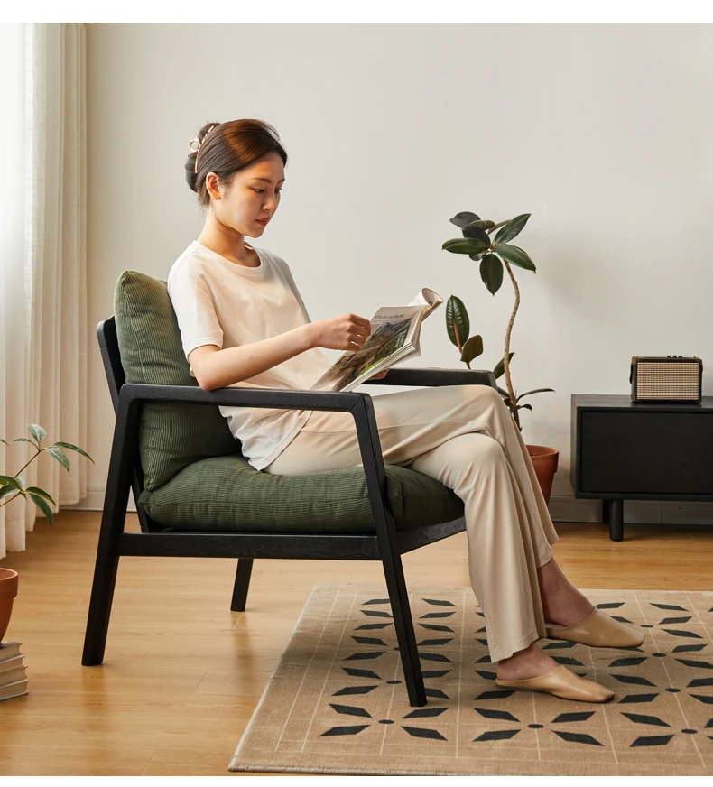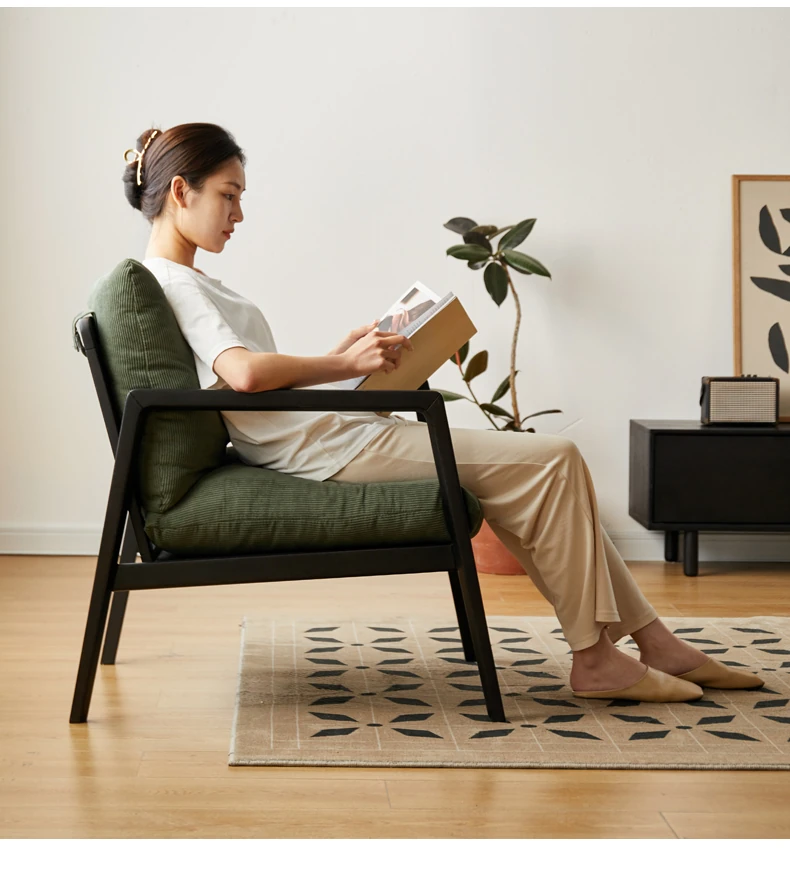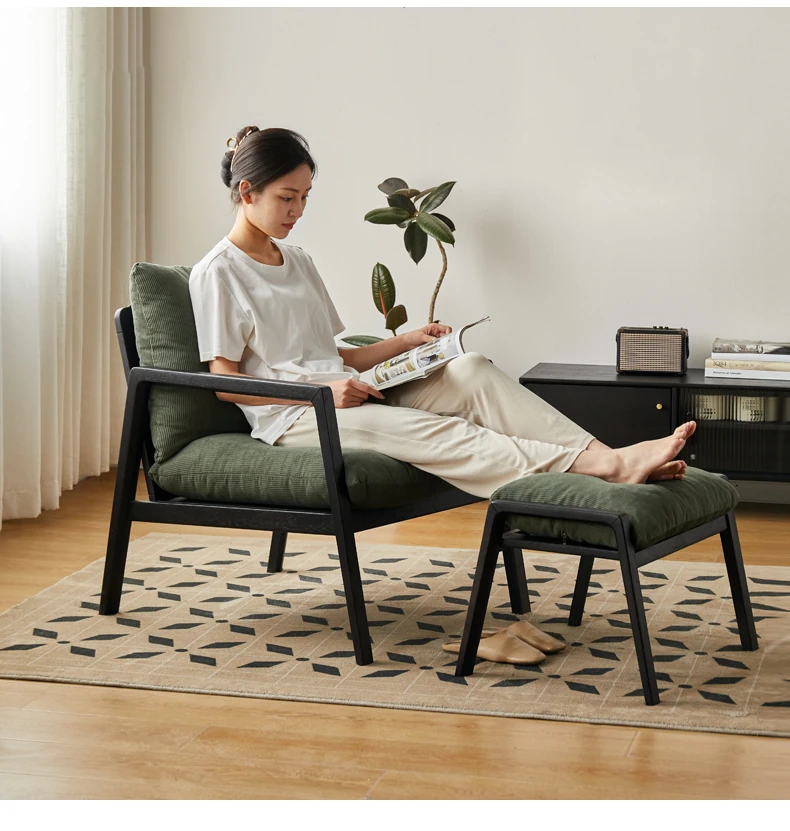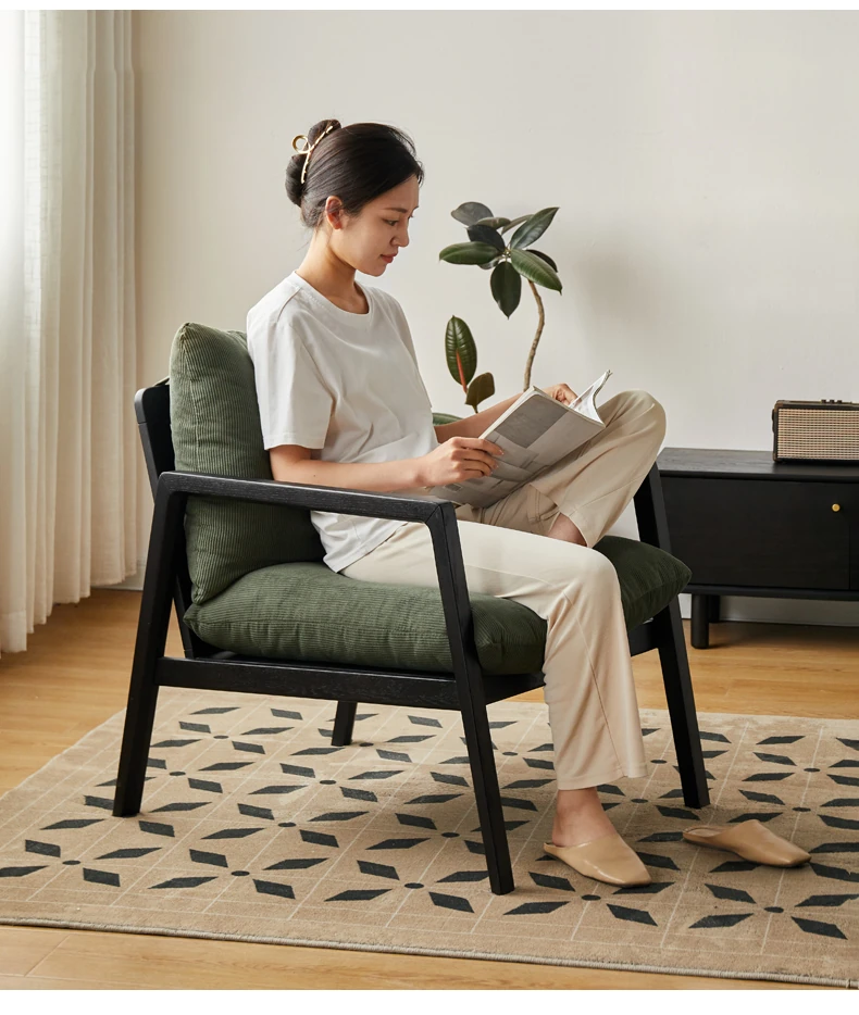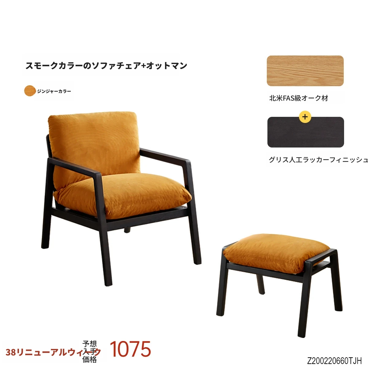 ヴィシャ実木ソファチェア - アメリカンライトラグジュアリーなリビング用シンプルオークのブラックバルコニーリクライニングチェア、贅沢な快適さをお手軽に!