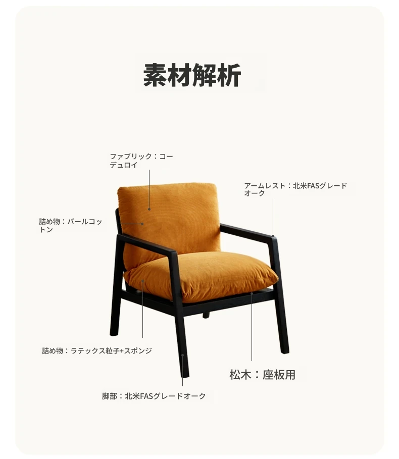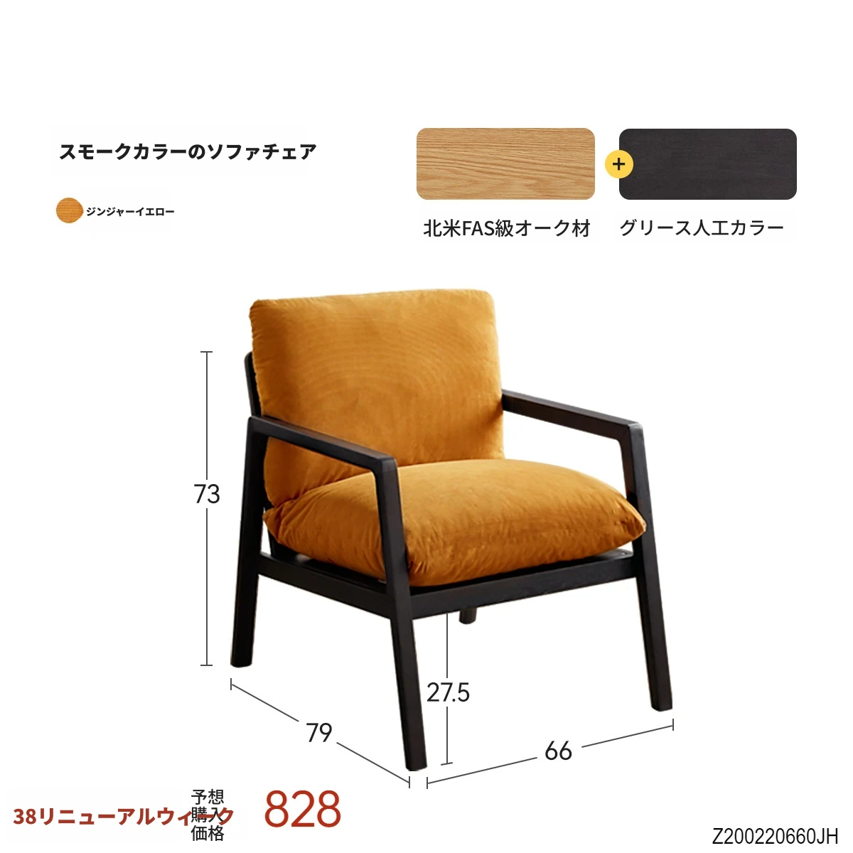 スモークカラーソファチェア(ジンジャーイエロー)(660*790*730mm)