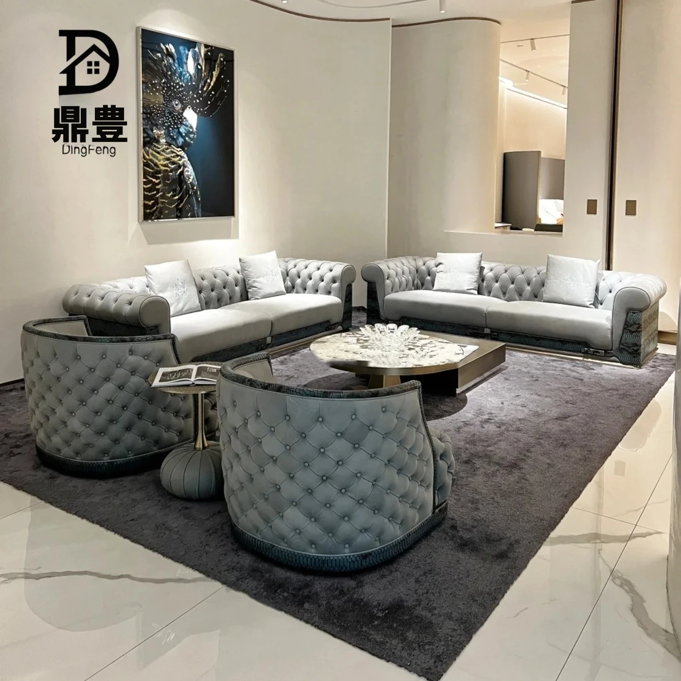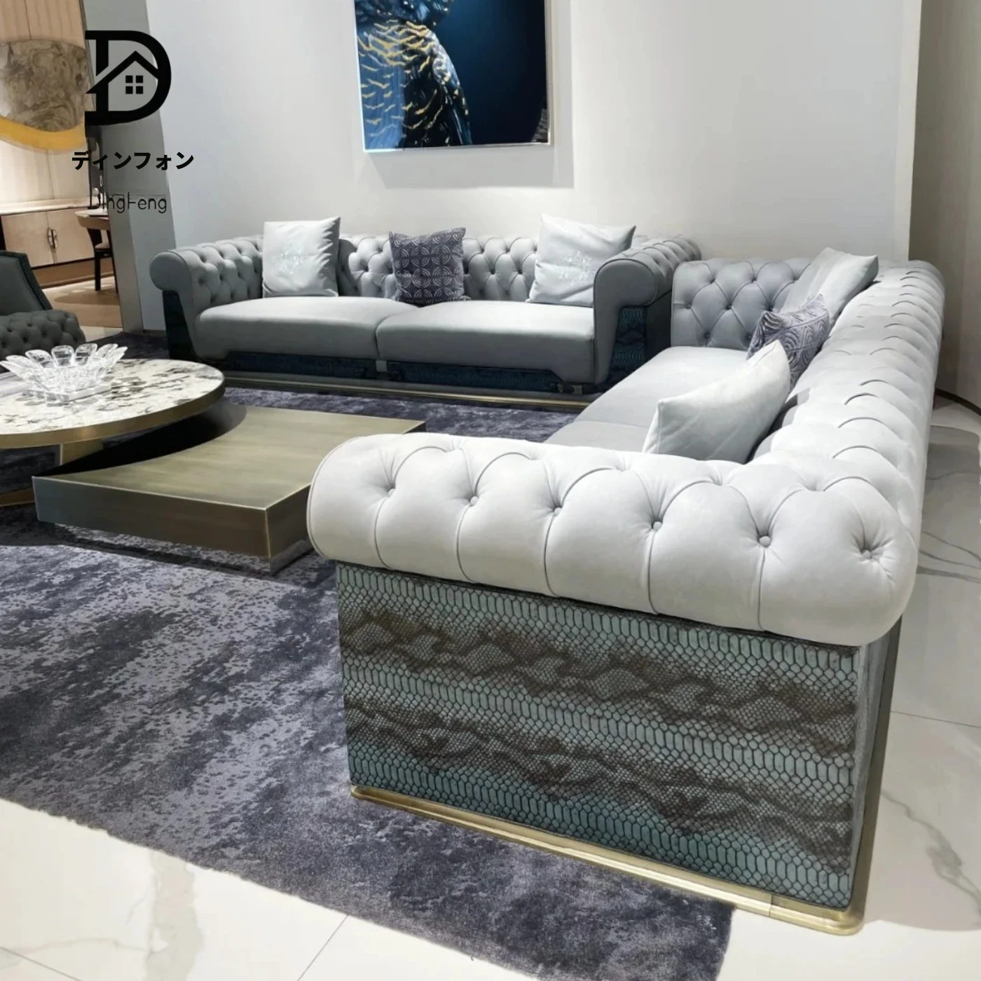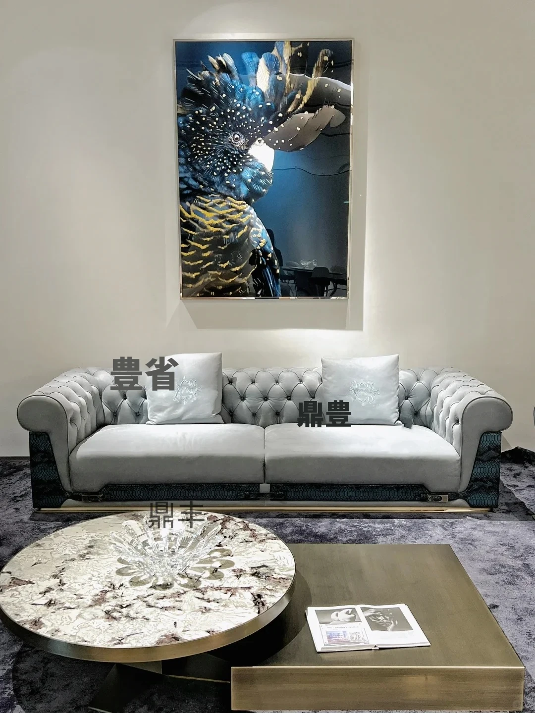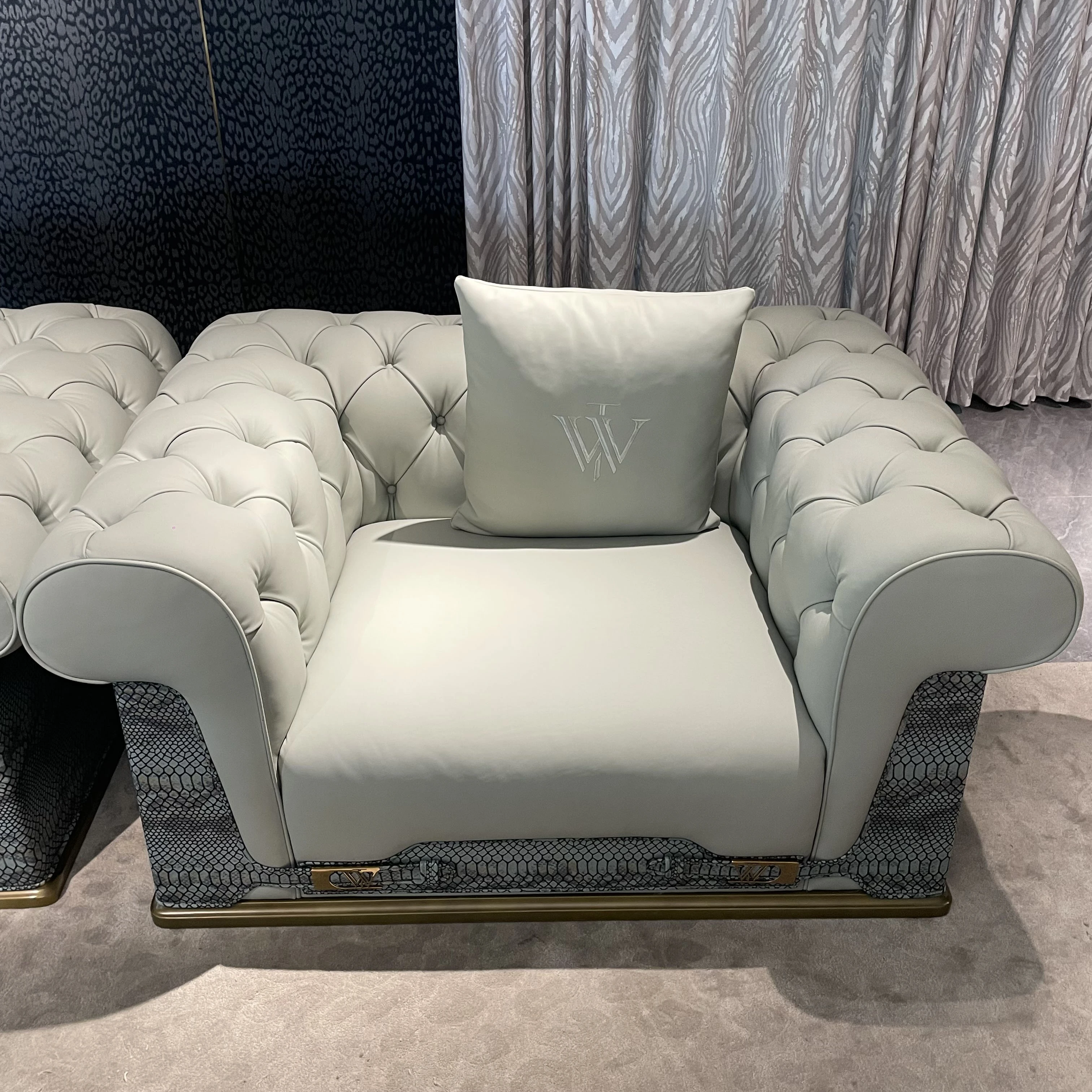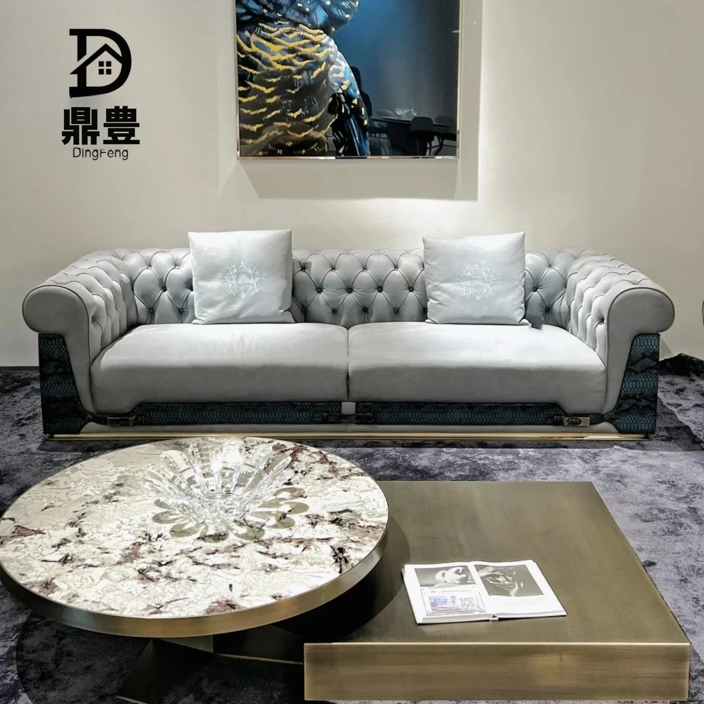 ヴィジョネア イタリア製 軽磨きスエード 本革ソファー パイソン柄 ストラップ付き 高級感あふれるヴィラ向けリビングに最適