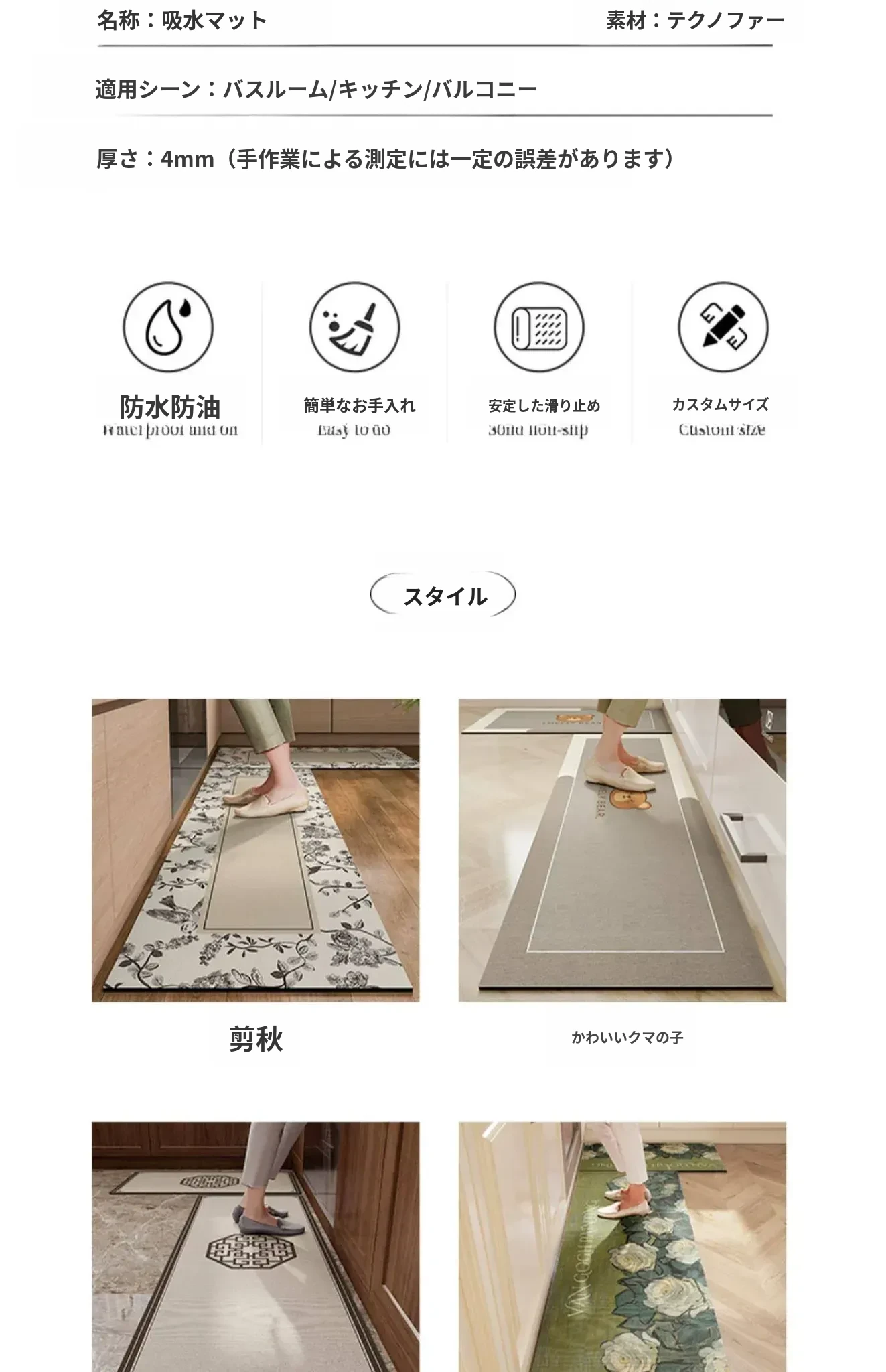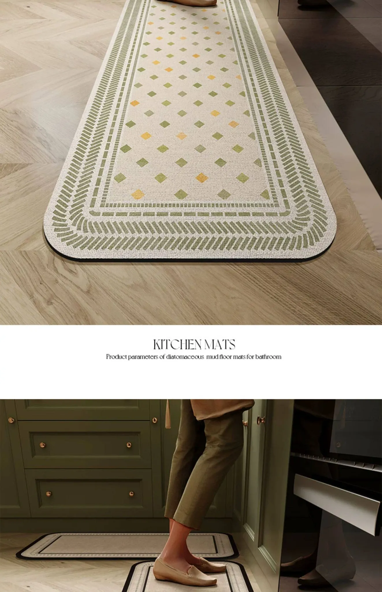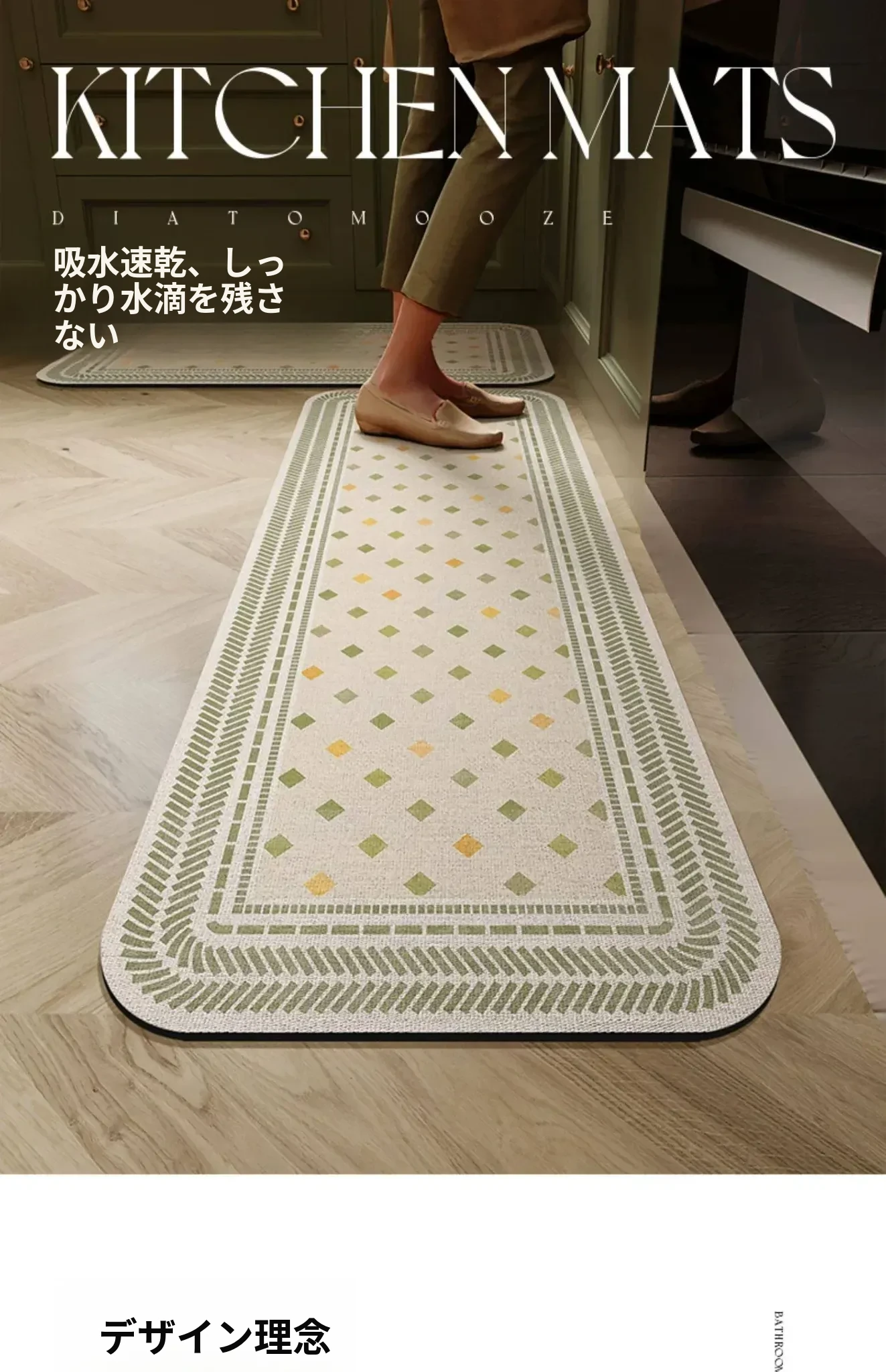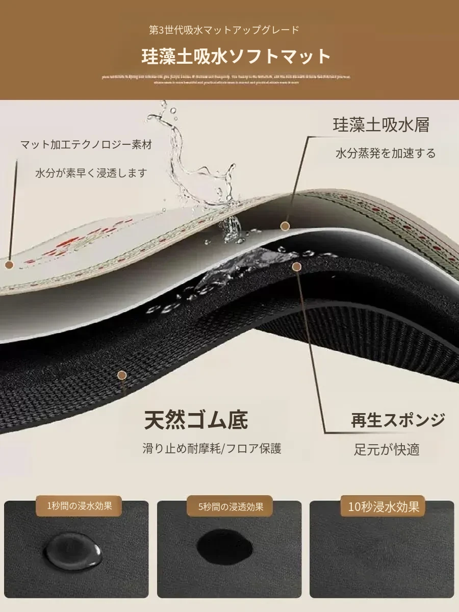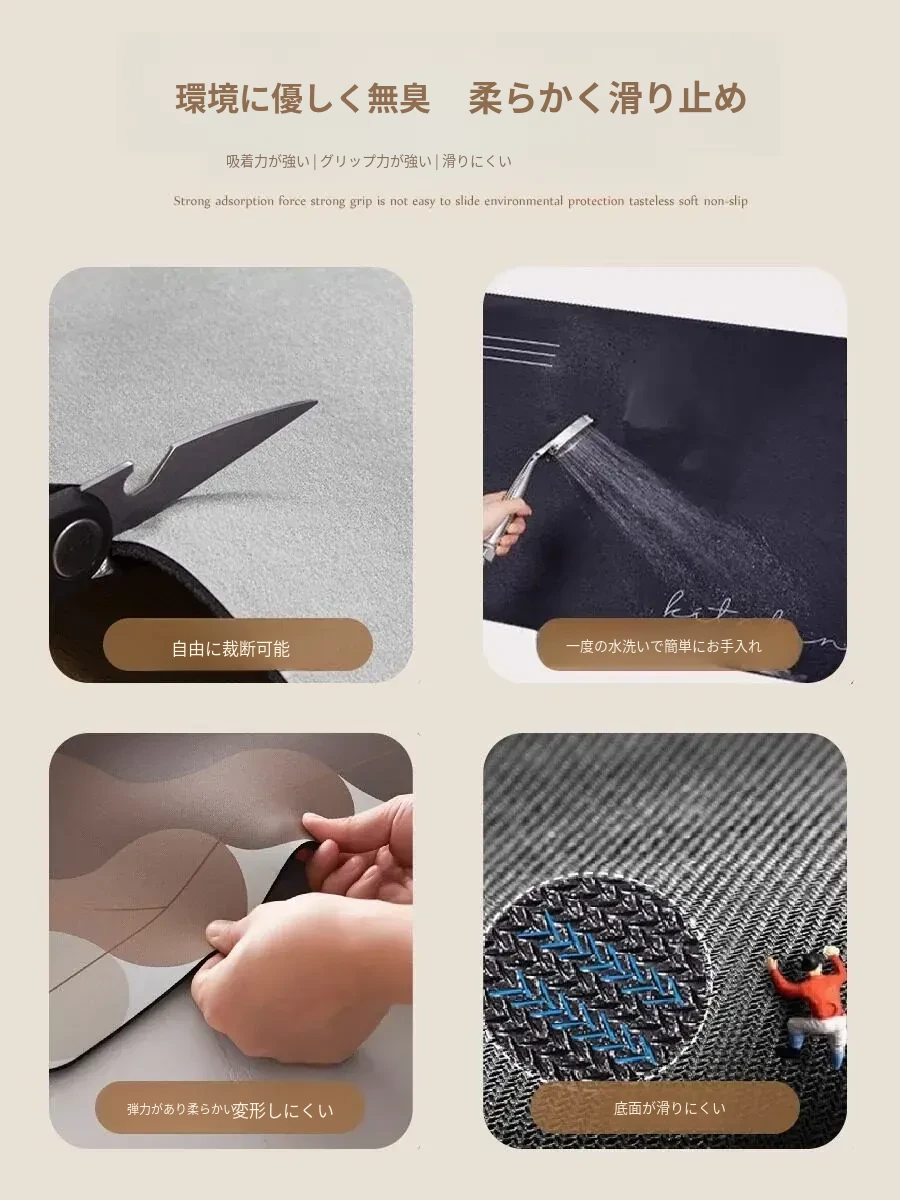 キッチン専用防水・防油のシリカゲル吸水マット!お手入れ簡単、洗わずに使える滑り止めマット。アメリカンスタイルのデザインで、快適なキッチンを演出します。