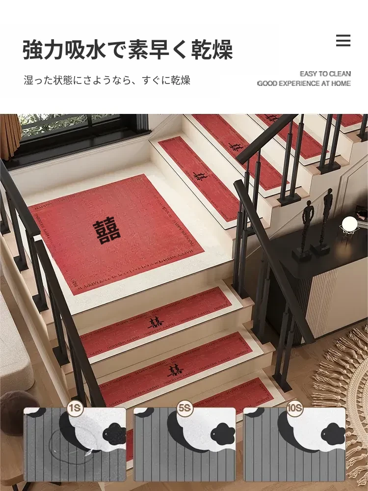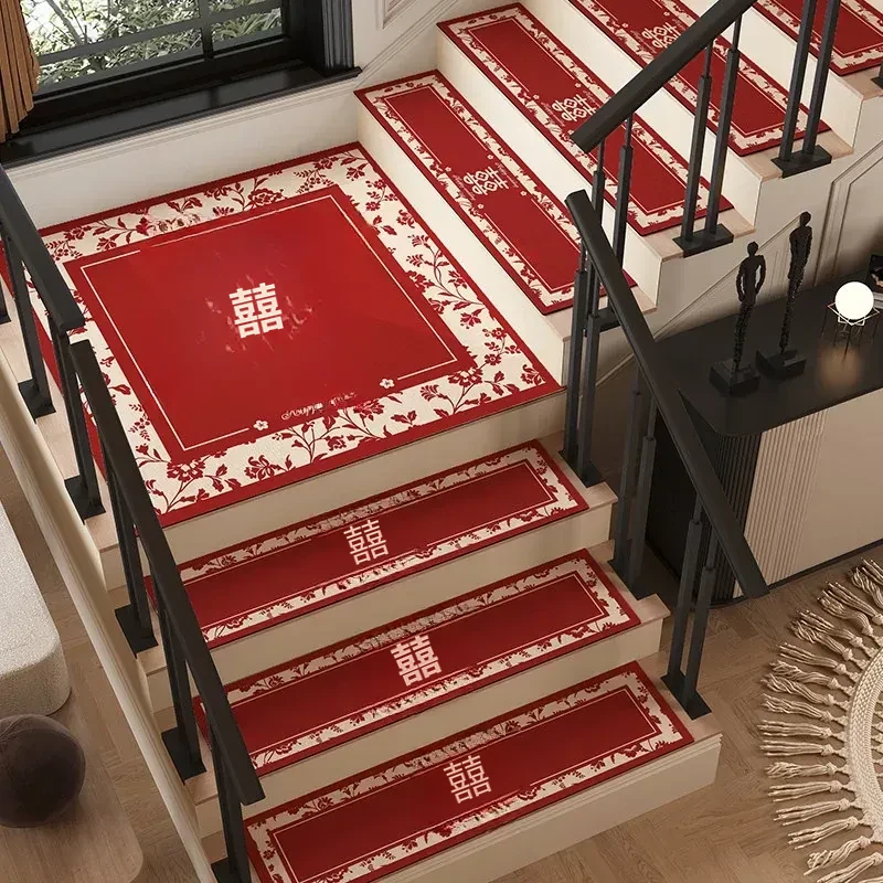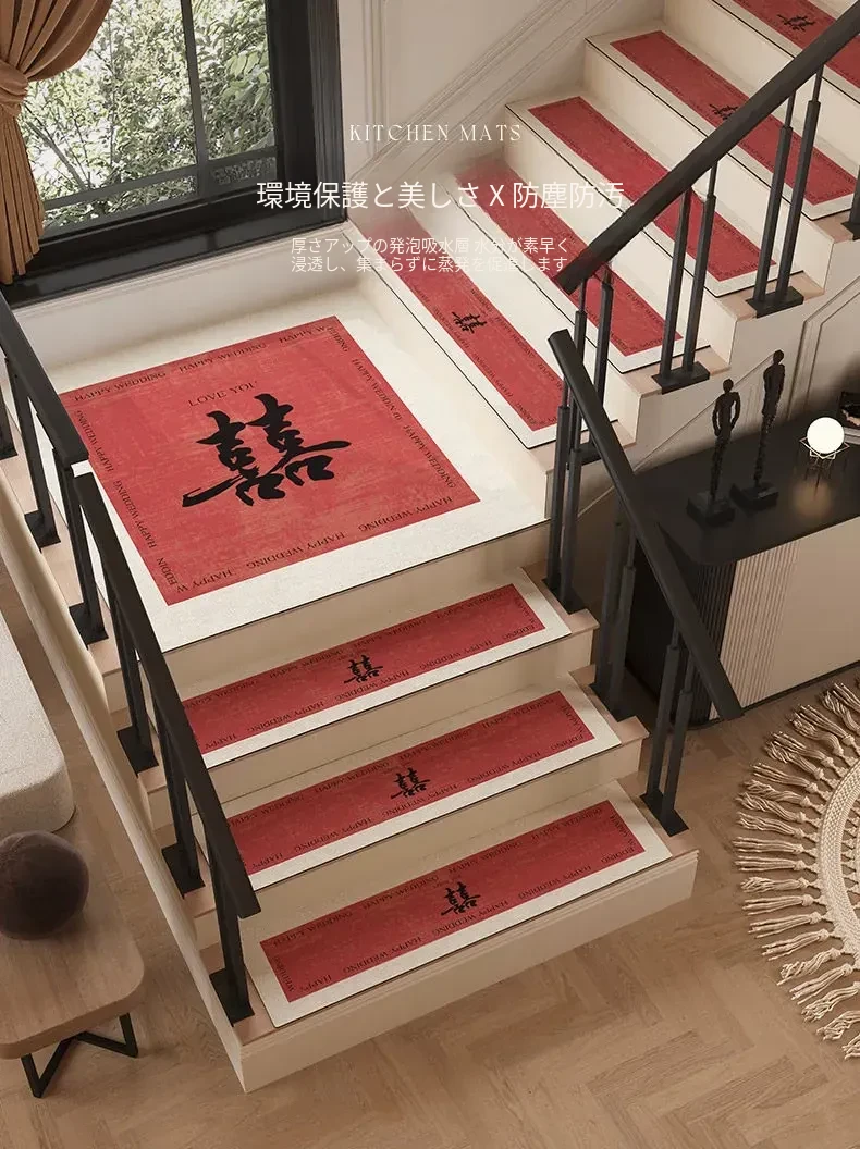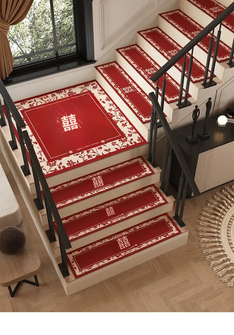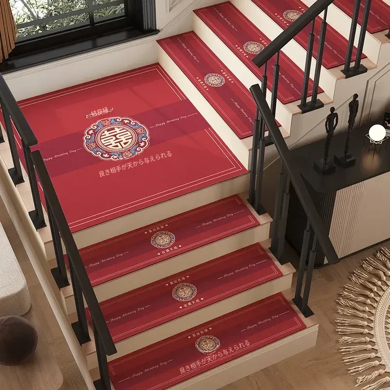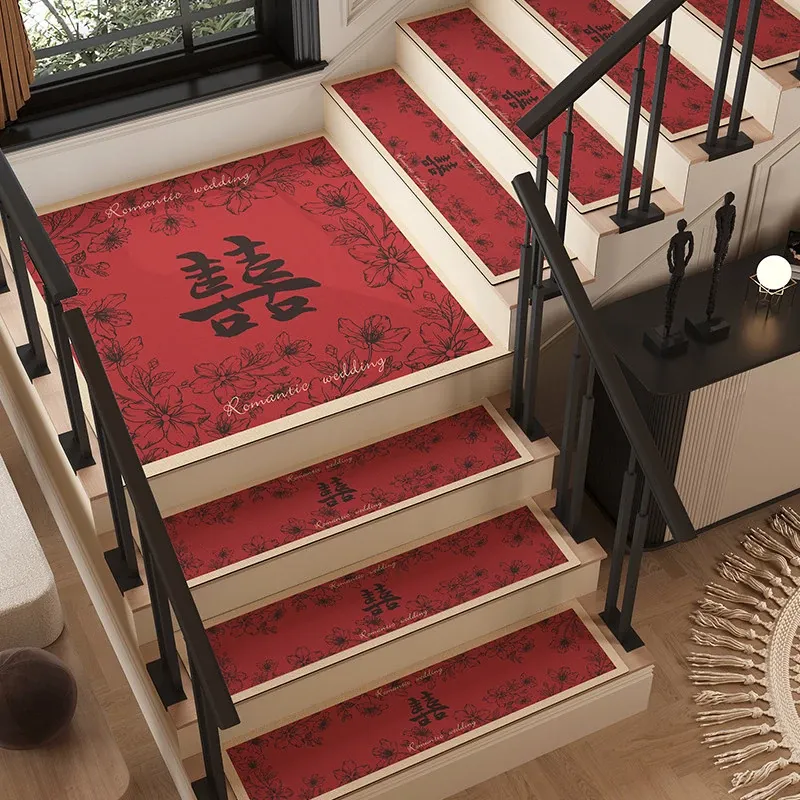 結婚式の階段マット、婚礼用室内装飾!赤いカーペット、家庭用滑り止め、洗浄不要の便利なステップマットで、特別な日を華やかに演出します!