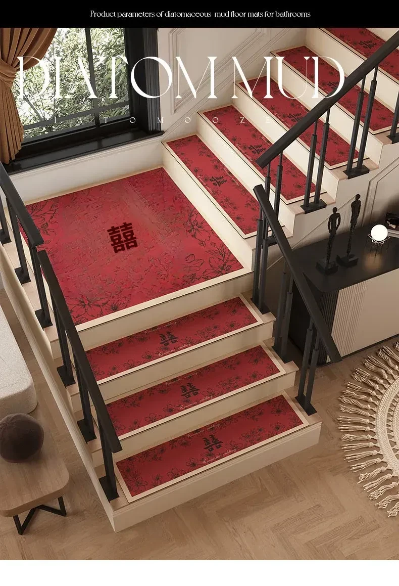 紅色の祝い事 - 珪藻土階段マット