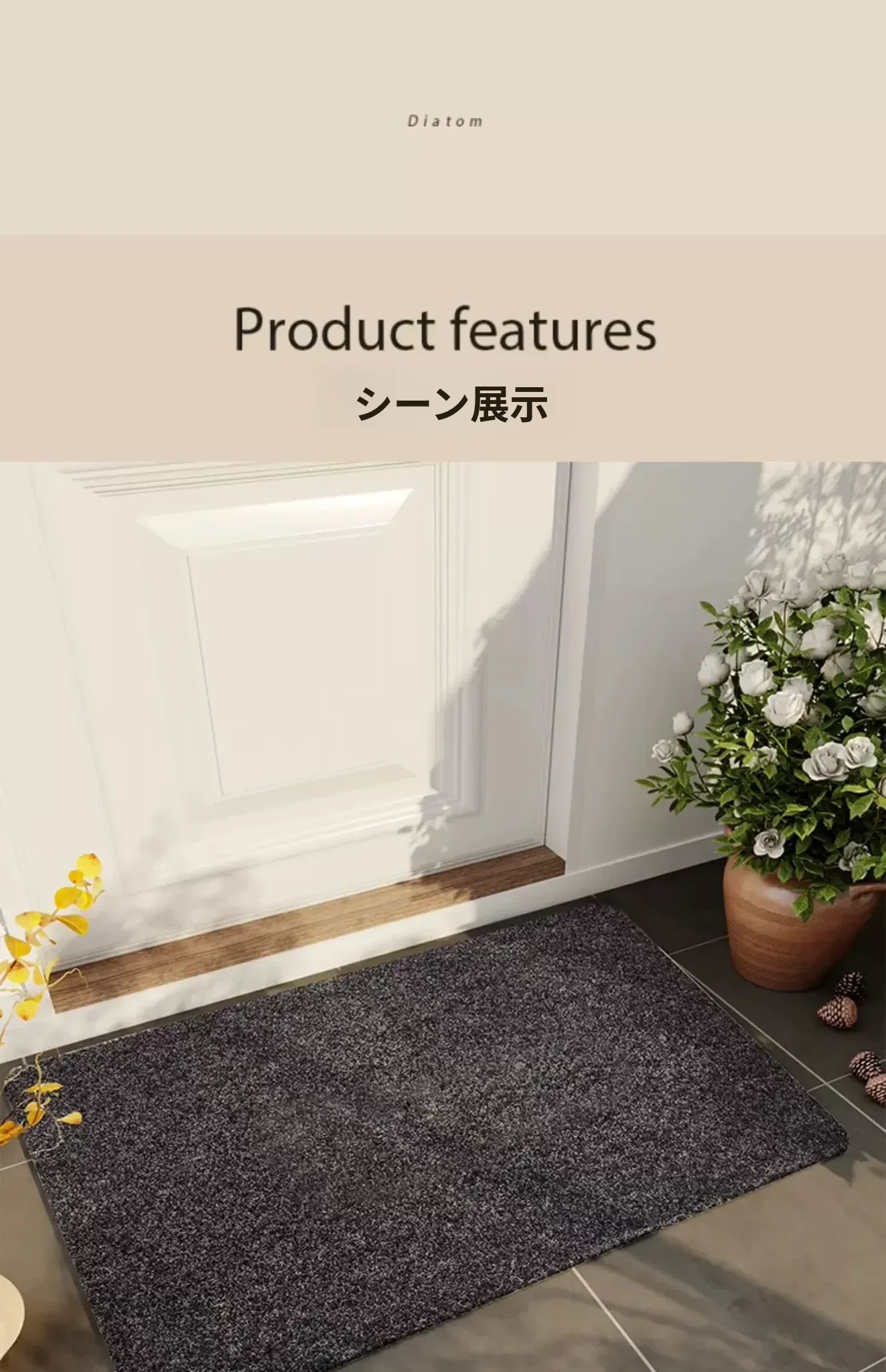 玄関マット 耐汚れ・滑り止め機能付き!おしゃれなブラウンの大きな玄関マットで、家に入るたびに心地よさを演出。お客様を迎えるための完璧なアイテムです!