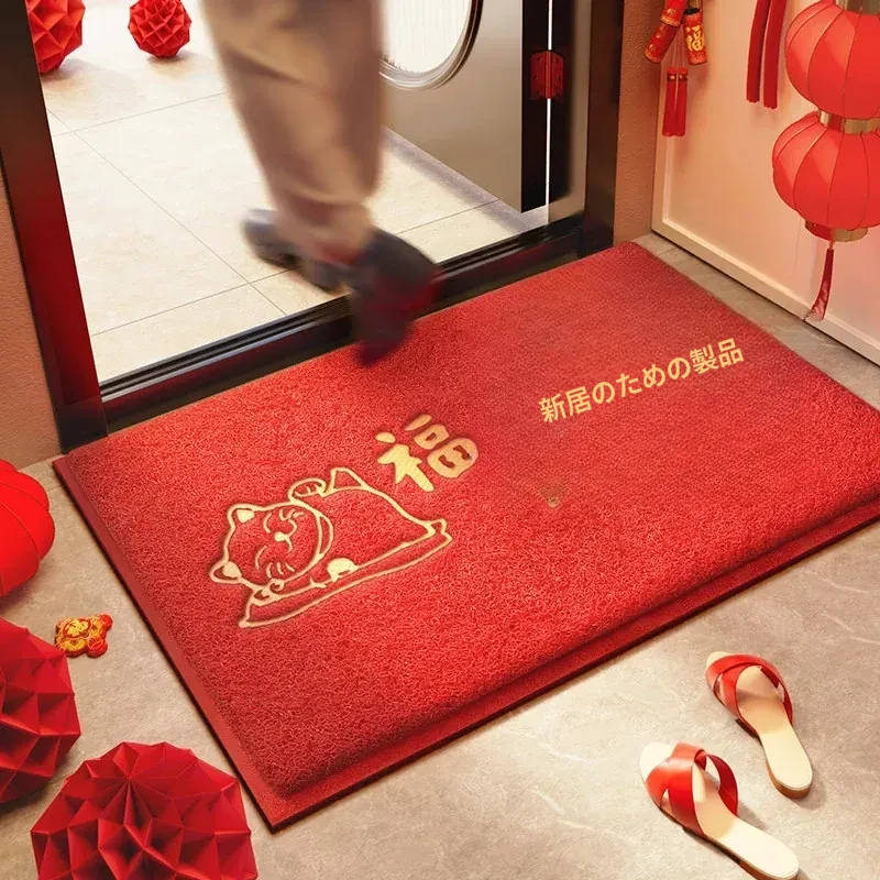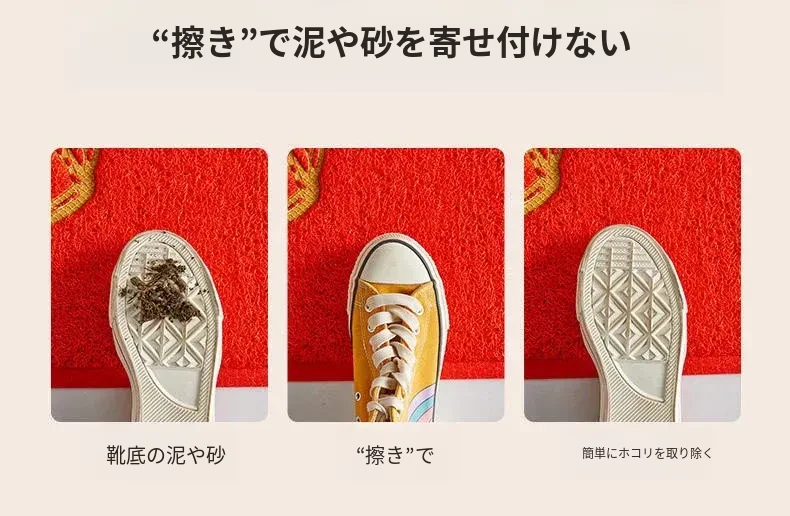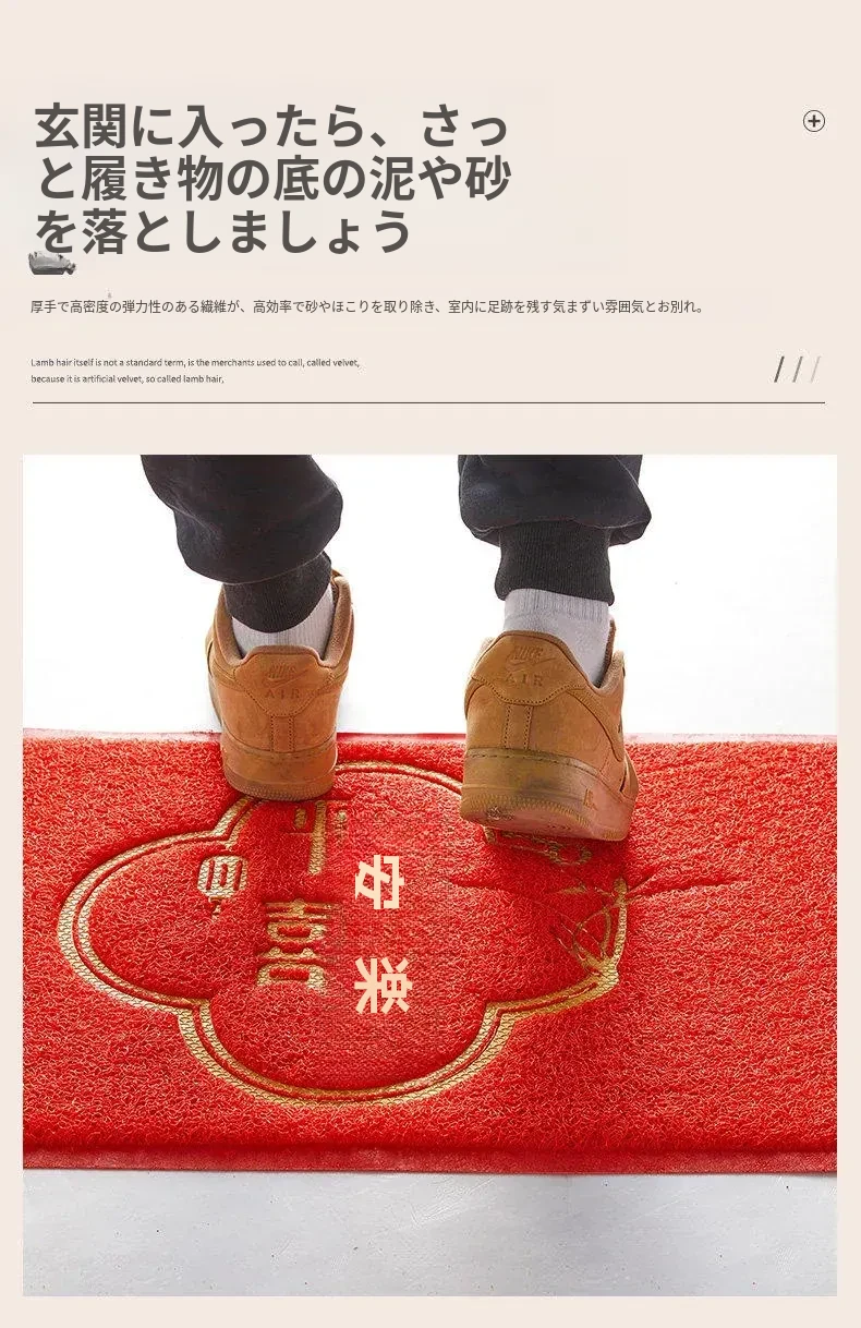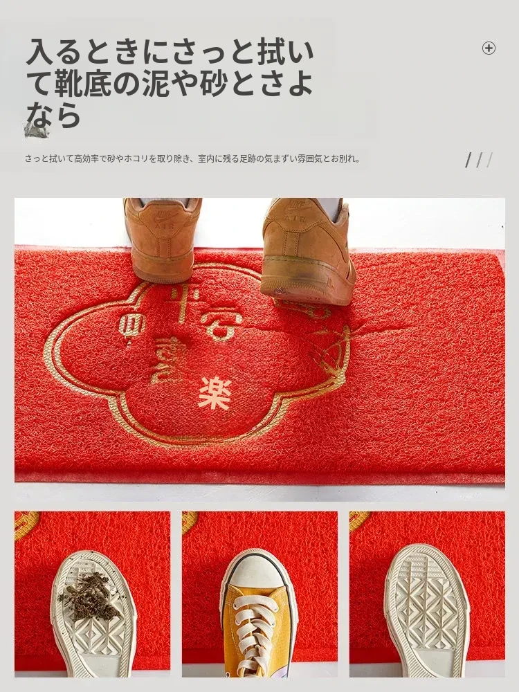 新居祝い!赤い専用玄関マット - 土を蹴散らさず、耐摩耗性抜群!滑り止め機能付きで、安全にお迎え。玄関やアウトドアにぴったりの一品です!