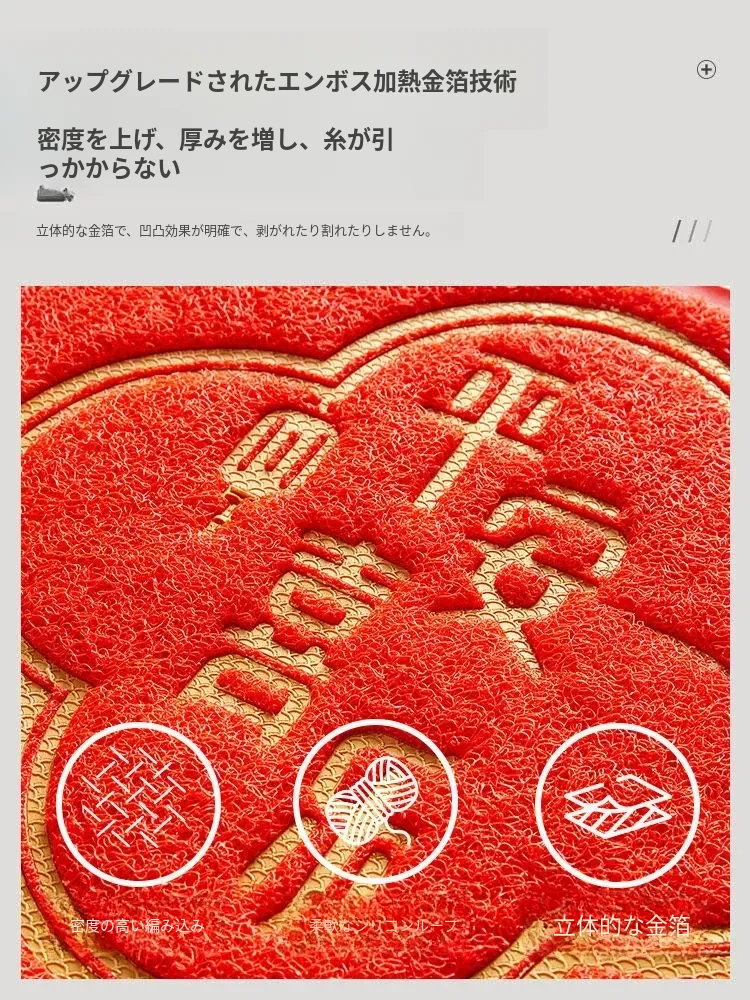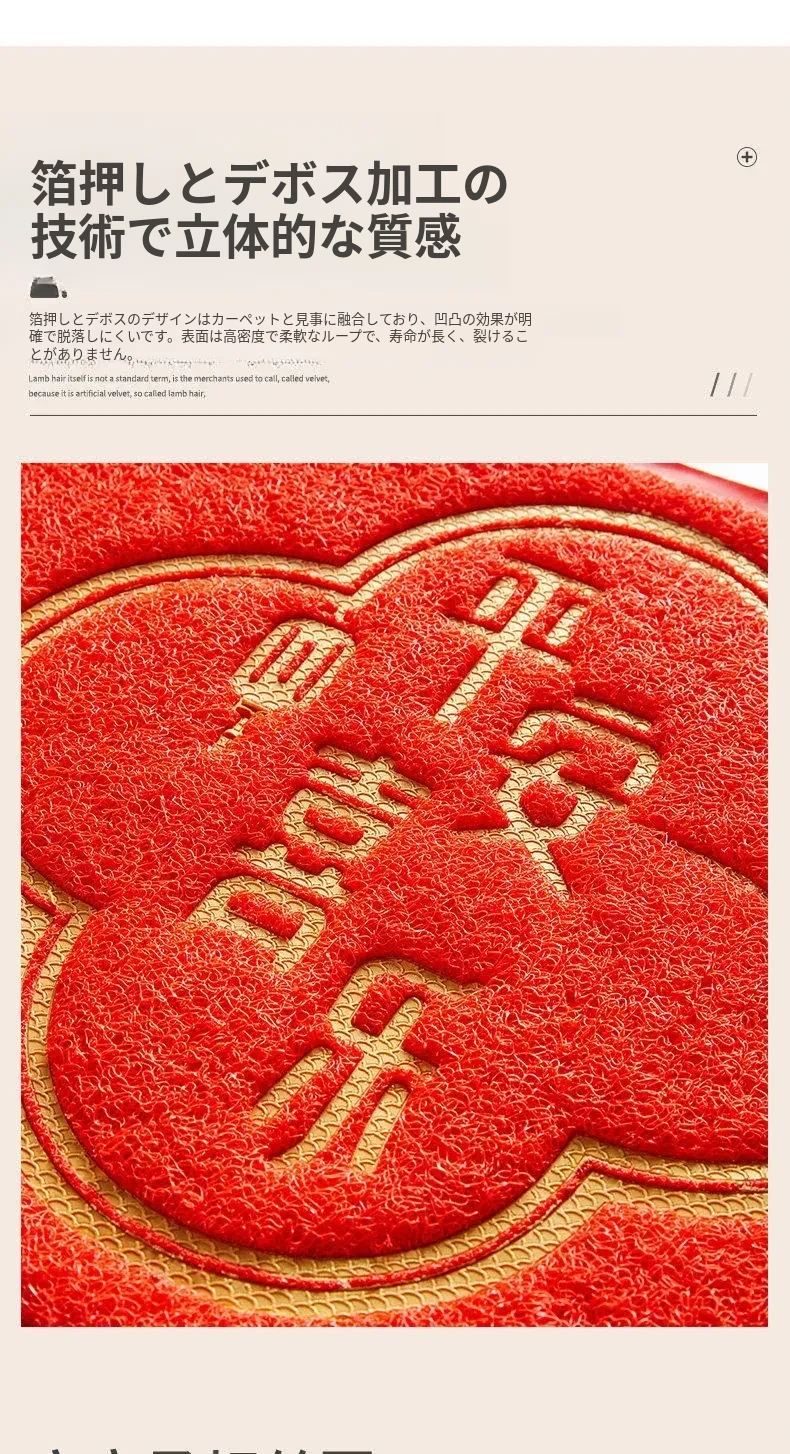 招財平安の赤い貼り皮圧花シルクサークルマット