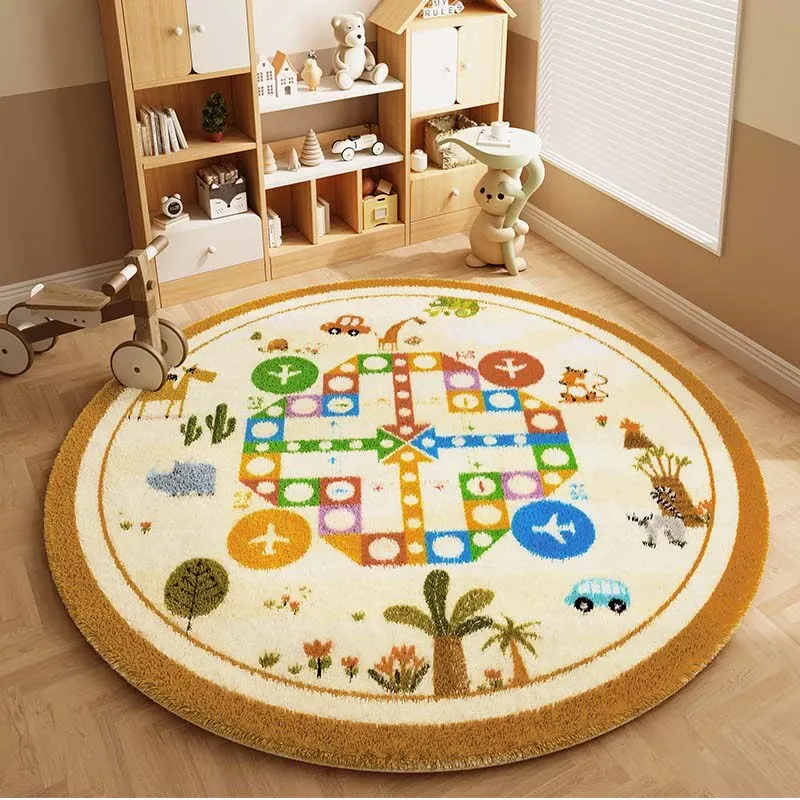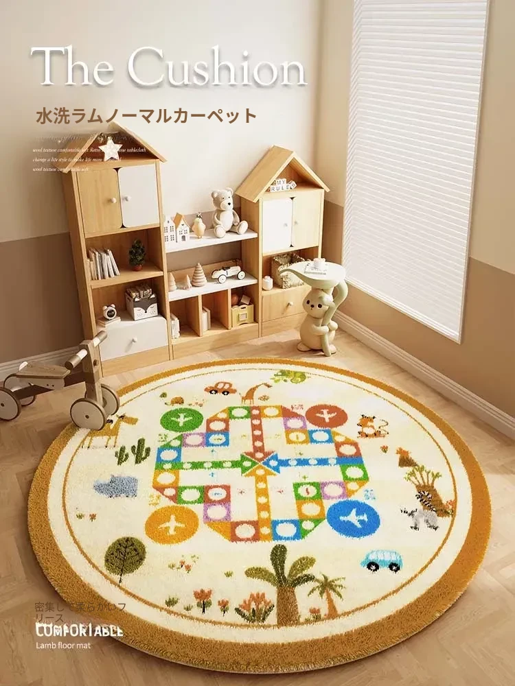 動物飛行機ゲーム洗えるラムフリースカーペット-円形
