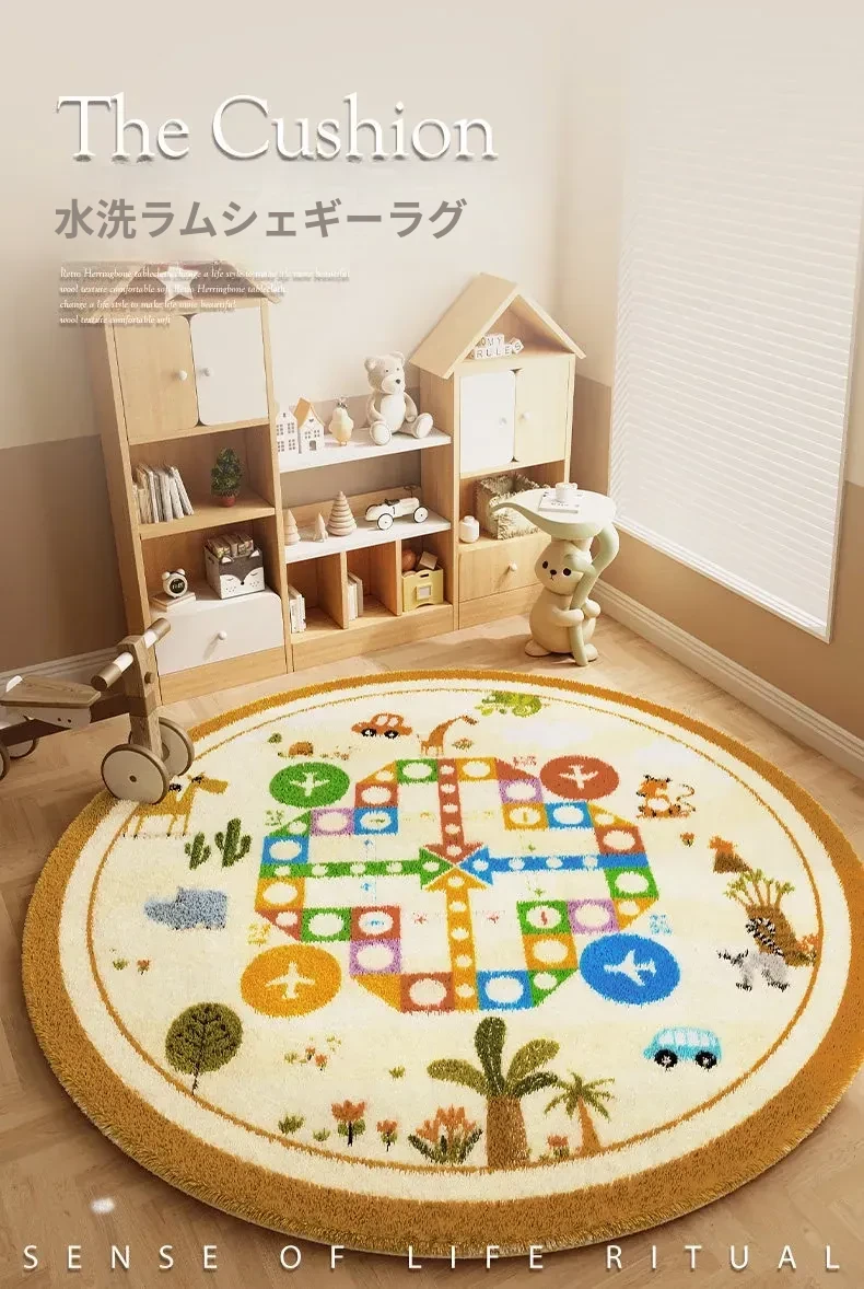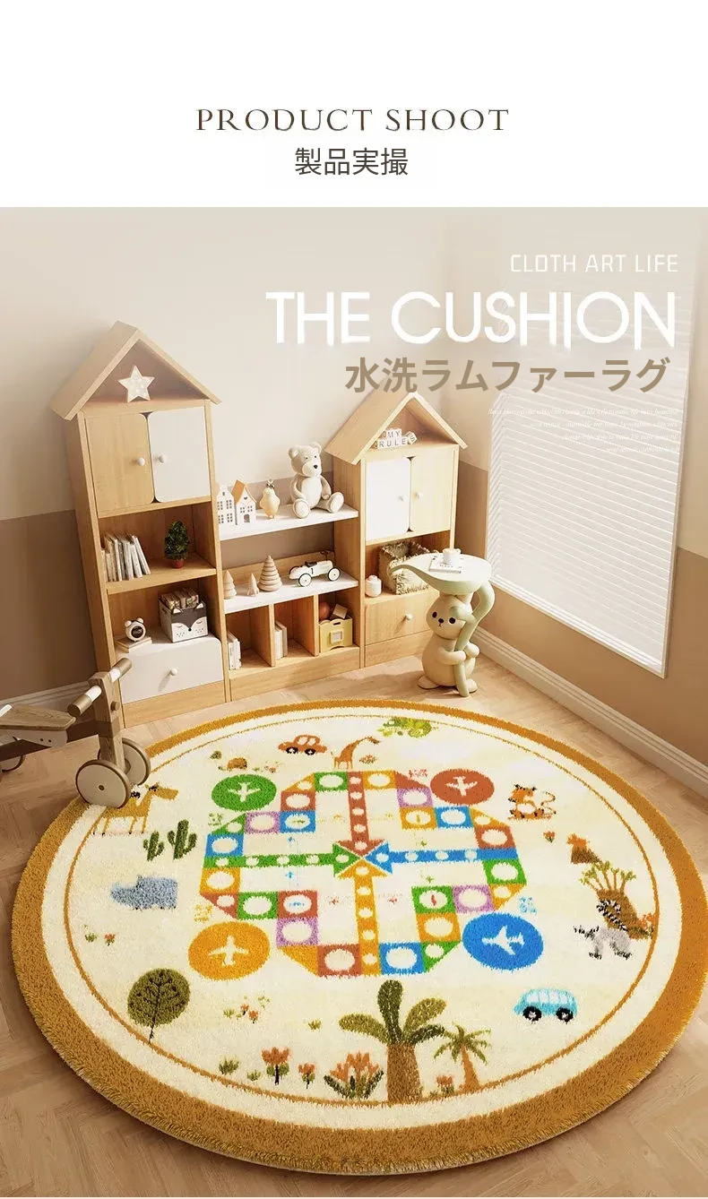 環状島ゲームフェスティバル洗えるラムフリースカーペット-円形