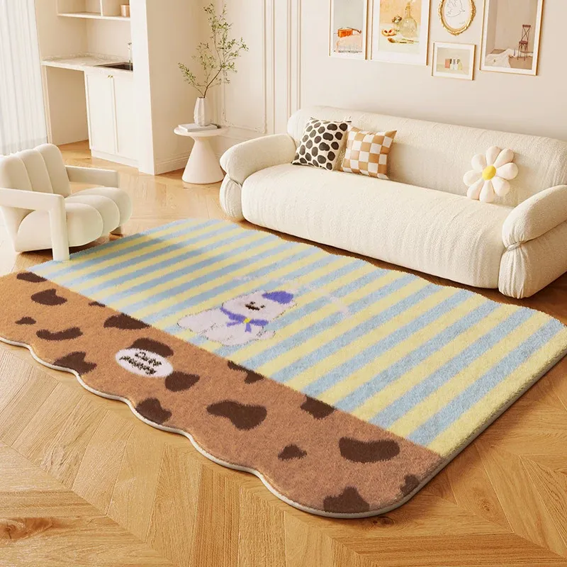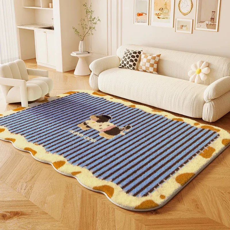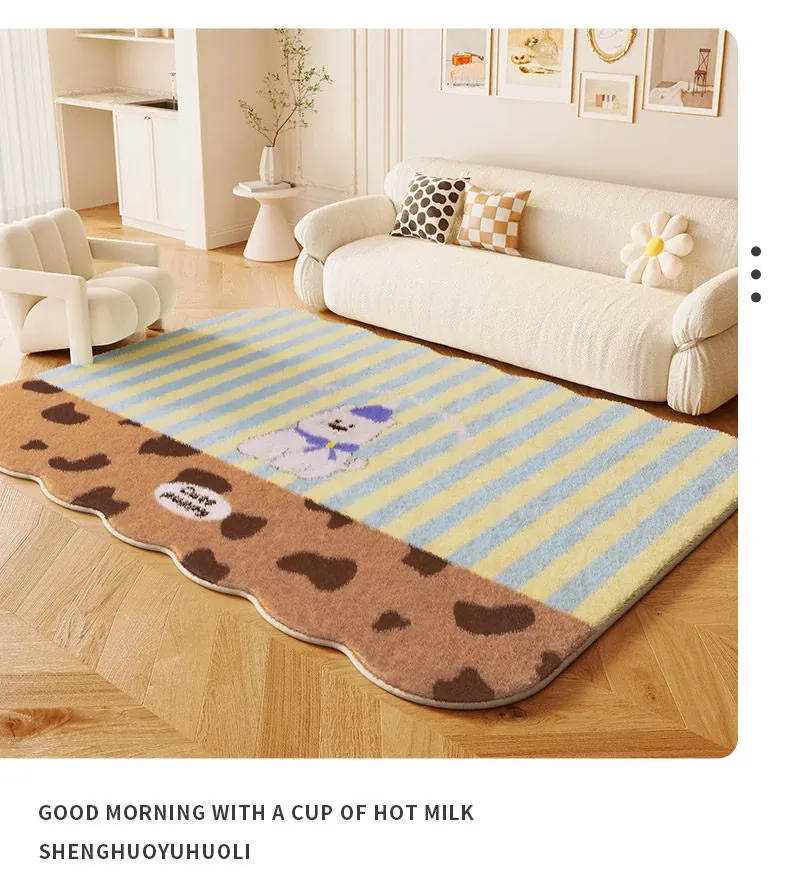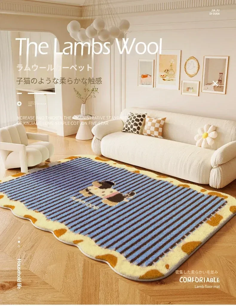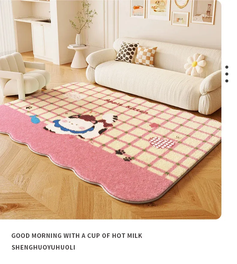 冬の新作!カートゥーンデザインのリビングルームラグ☆ユニークな形状でおしゃれなティーテーブル用☆お家で使える!ふわふわで滑り止め付きの快適マット、寝室にもぴったり!