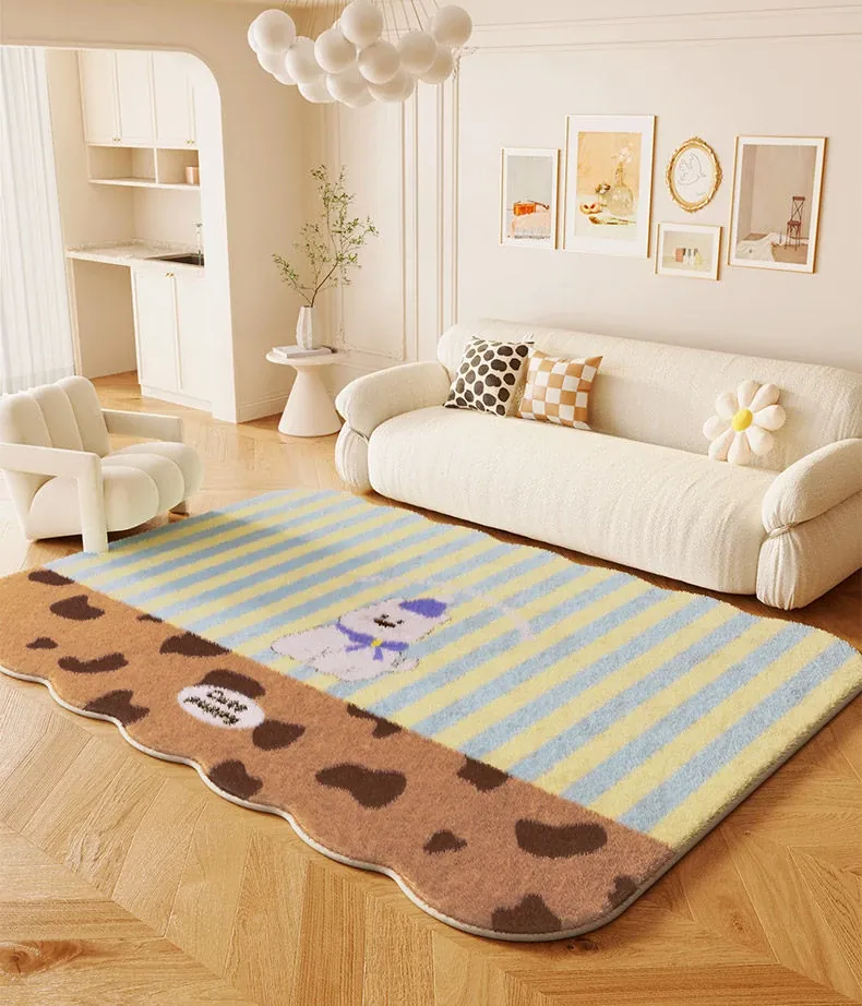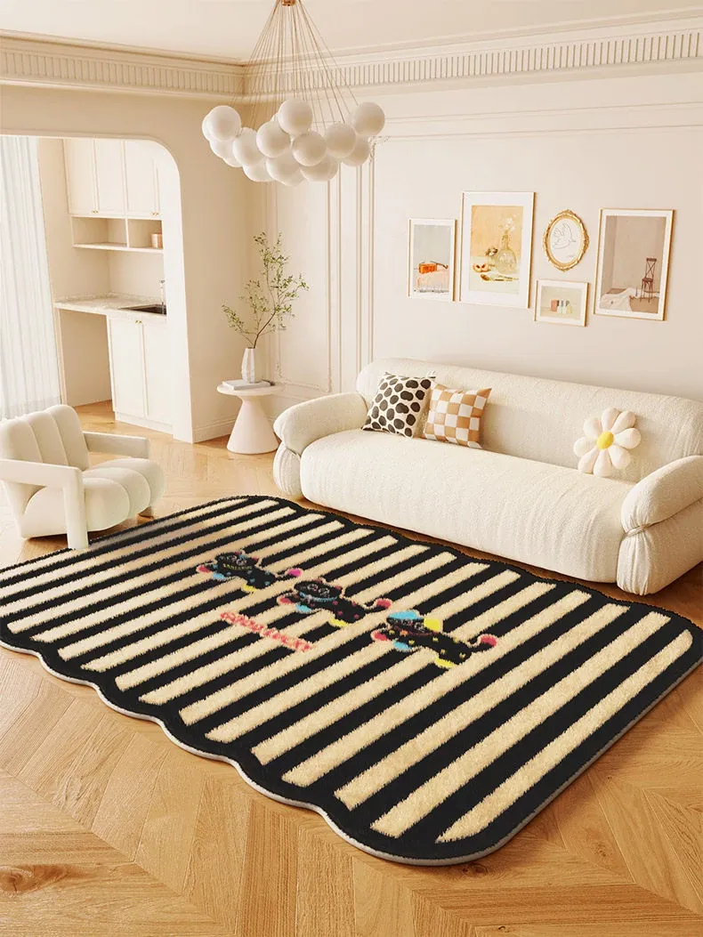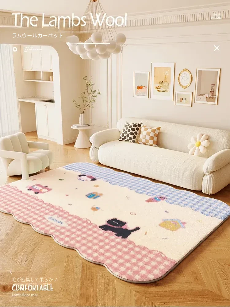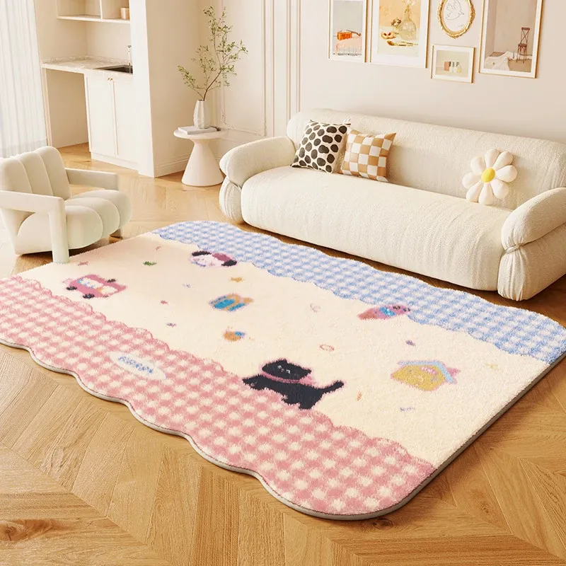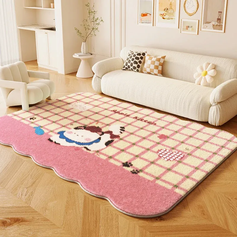 冬の新作!カートゥーンデザインのリビングルームラグ☆ユニークな形状でおしゃれなティーテーブル用☆お家で使える!ふわふわで滑り止め付きの快適マット、寝室にもぴったり!