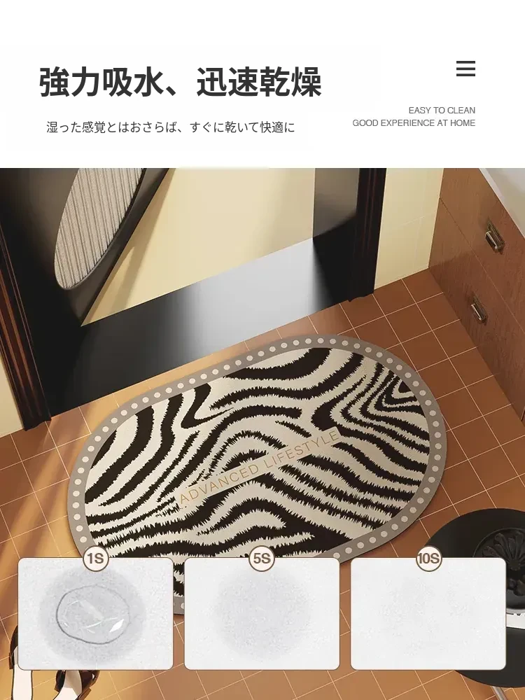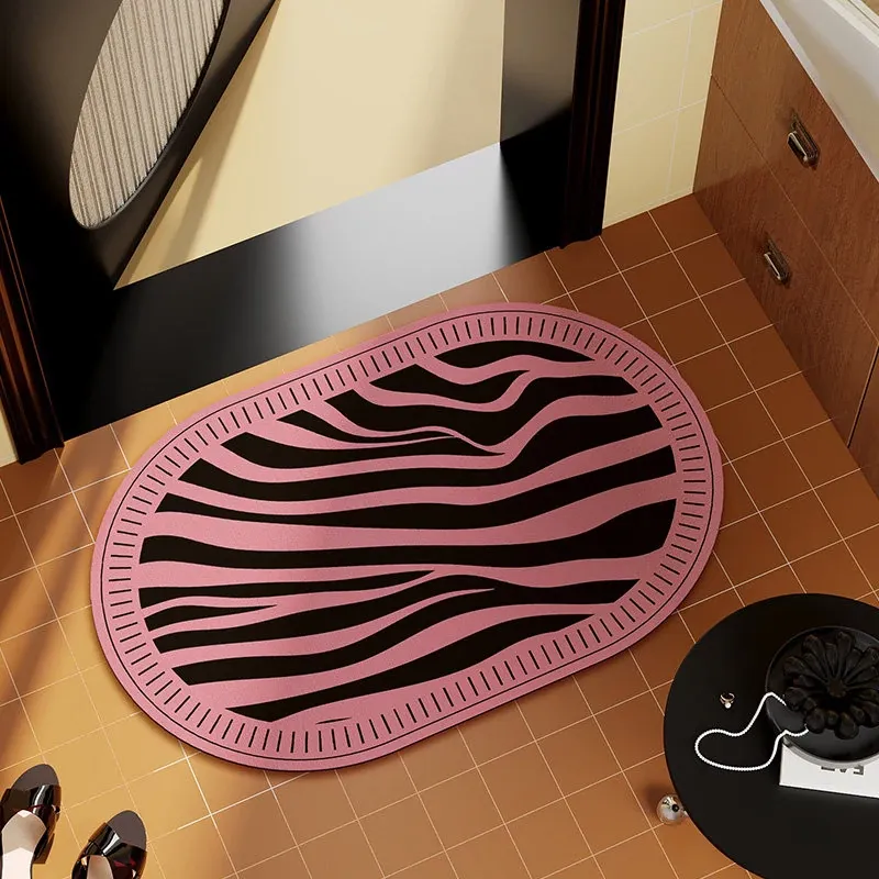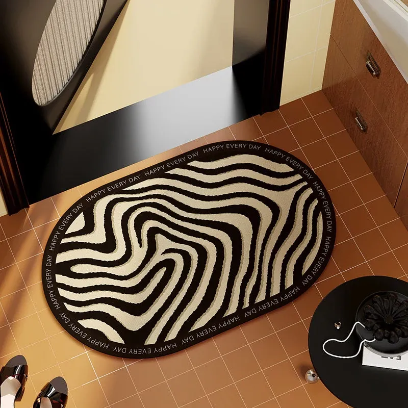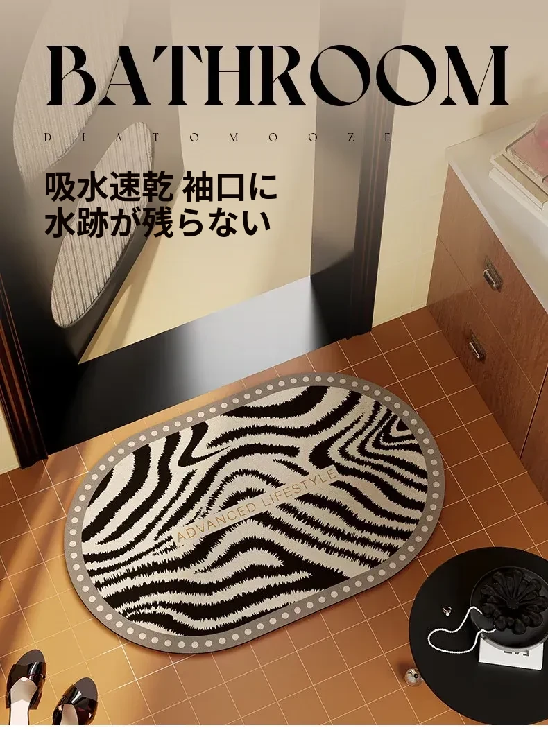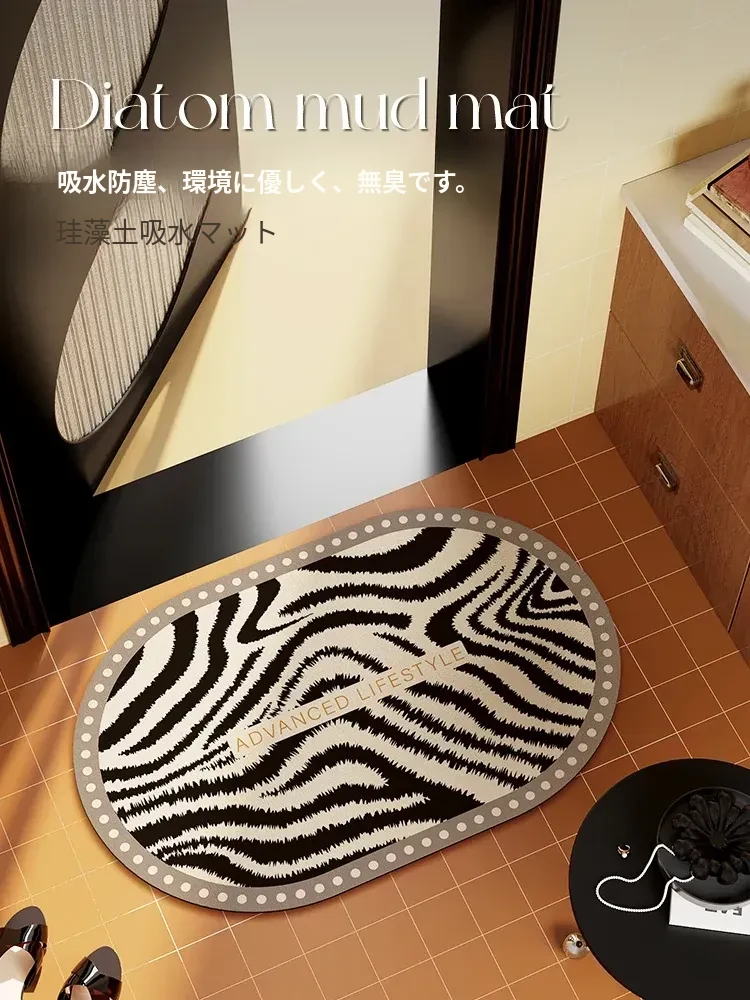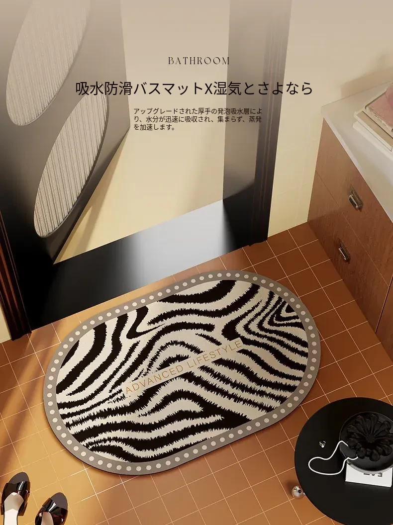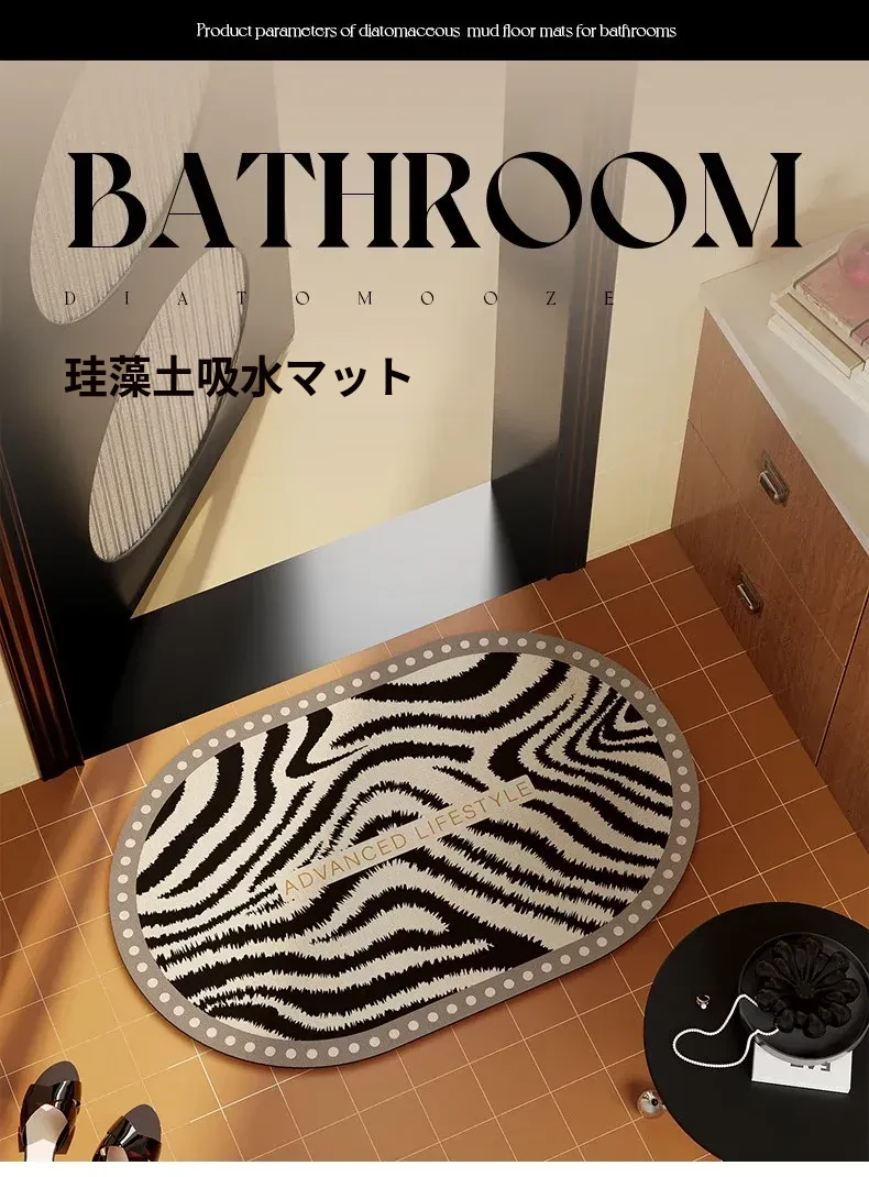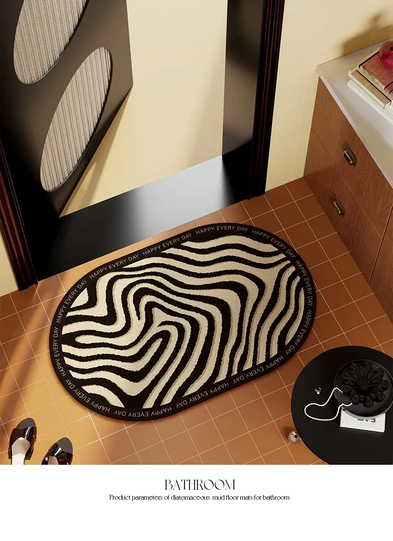 ゾebraストライプのバスルームマット - 吸水性抜群の珪藻土マット、トイレの入り口にぴったり!滑り止め付きで安全性もバッチリ。おしゃれで機能的な足元を演出します。