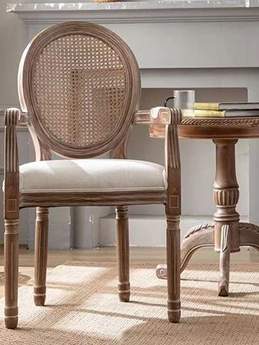 Vintage European Dining Chair - Retro Rustic Design with Simple Backrest, American Country Style, Solid Wood Armchair, Rattan Weaving - Perfect for Your Cozy Home Decor