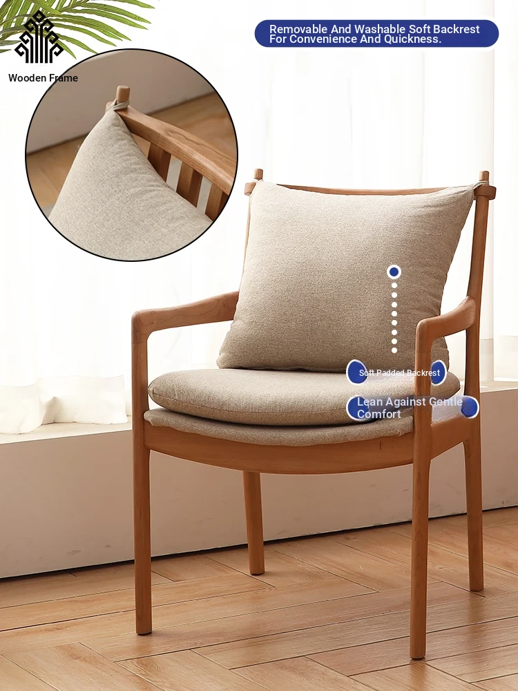 Scandinavian Minimalist Solid Wood Dining Chair with Soft Cushion - Perfect for Small Spaces, Elderly-Friendly Design with Armrests, Available in Natural Oak and Cherry Wood for a Stylish Study or Dining Experience.
