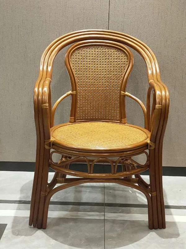 Handwoven Natural Rattan Single Reclining Chair - Vintage Office Rattan Chair for Adults, Perfect for Balconies and Relaxation, Ideal for Seniors