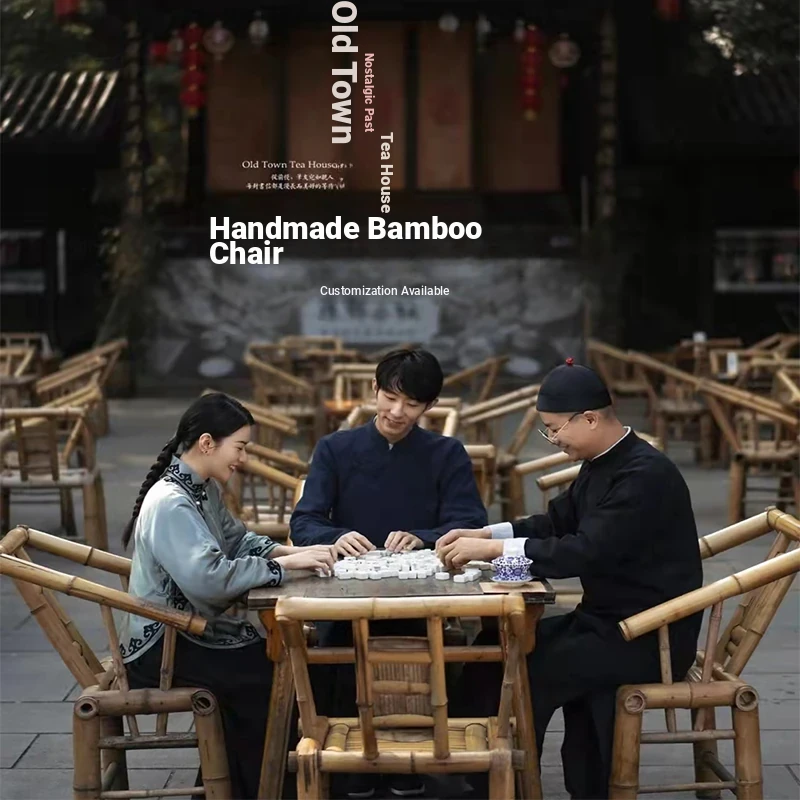 Traditional Chinese Bamboo Dining Set for Restaurants and Tea Houses – Elegant Bamboo Table and Chairs for Hotpot, Crafted with Old Techniques – Perfect for Hotels and Cozy Dining Experiences
