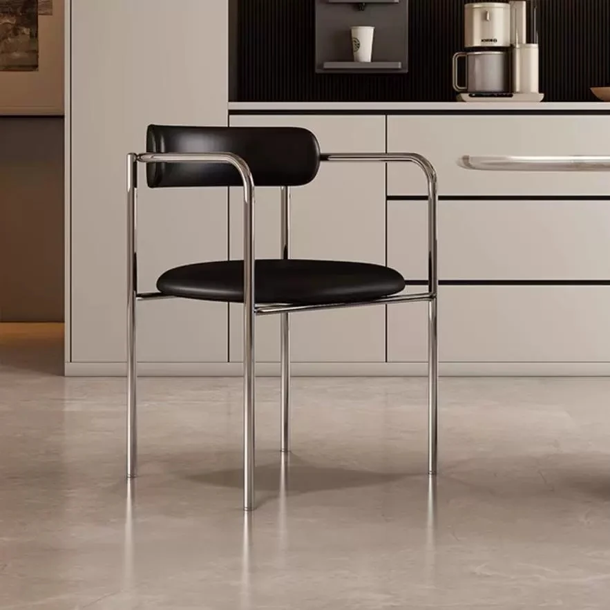 Nordic Minimalist Stainless Steel Dining Chair - Modern Luxury Design for Hotels and Small Spaces, Featuring Creative Leather Upholstery