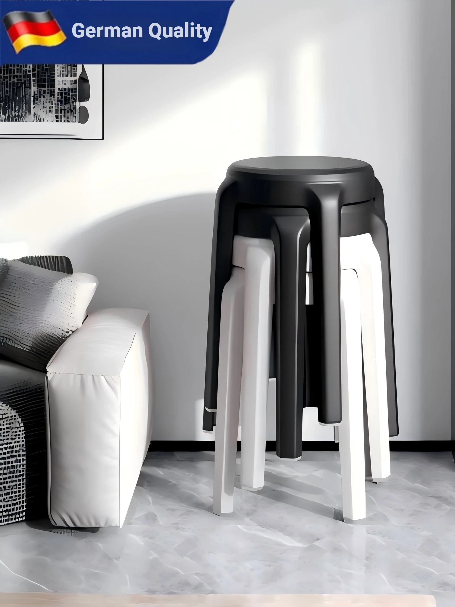 Mortina German Thickened Plastic Stools - Stackable Modern Minimalist High Round Chairs for Home Use - Durable and Space-Saving Design