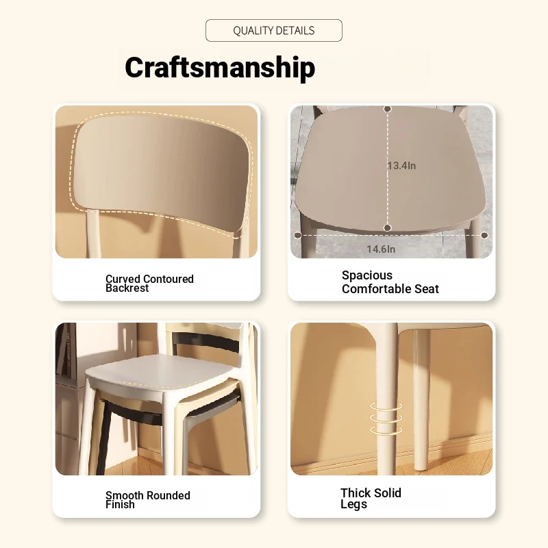 Modern Minimalist Thickened Plastic Dining Chair with Backrest - Comfortable Nordic Style Home Dining Stool for Long Sitting
