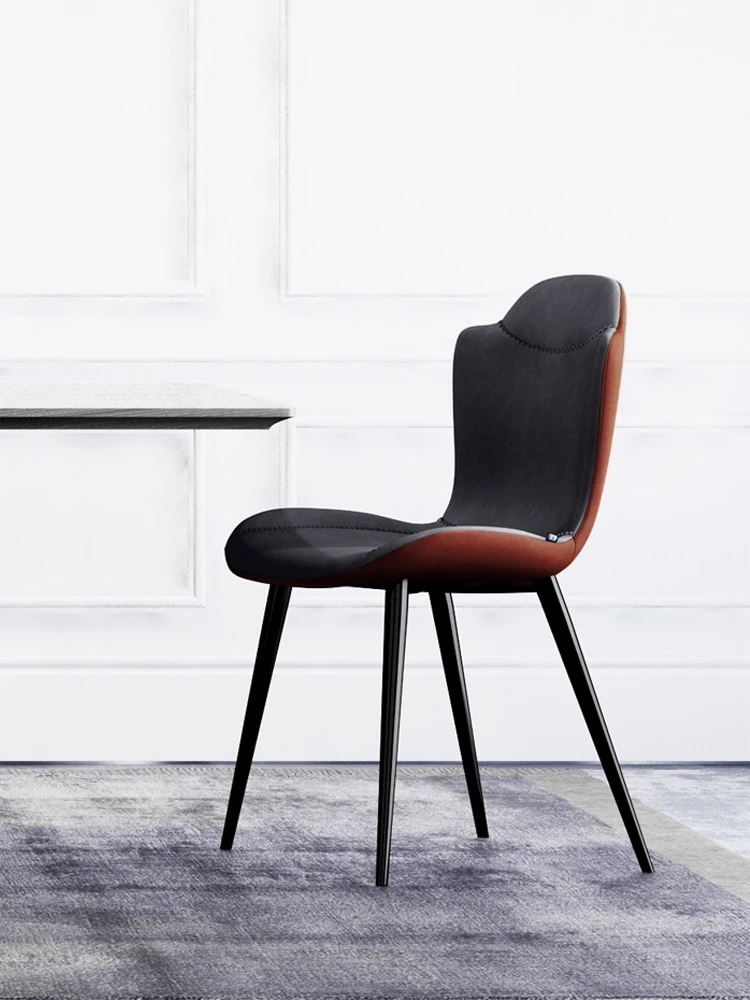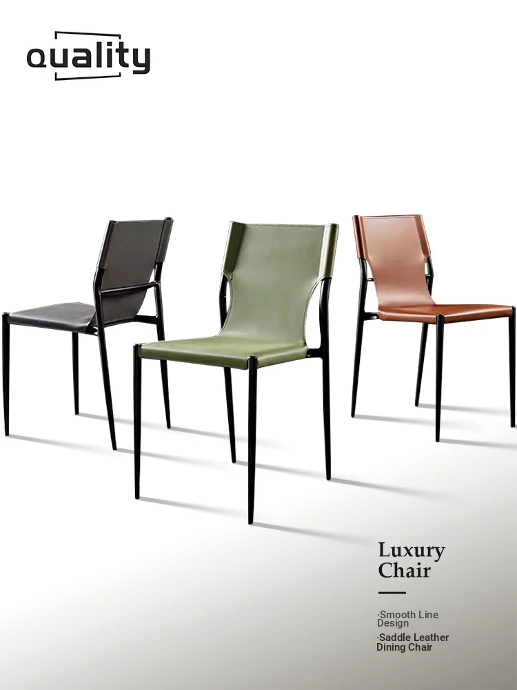 Italian Leather Saddle Dining Chair - Modern Minimalist Home and Restaurant Seating with Backrest, Perfect for Stylish Dining Experiences