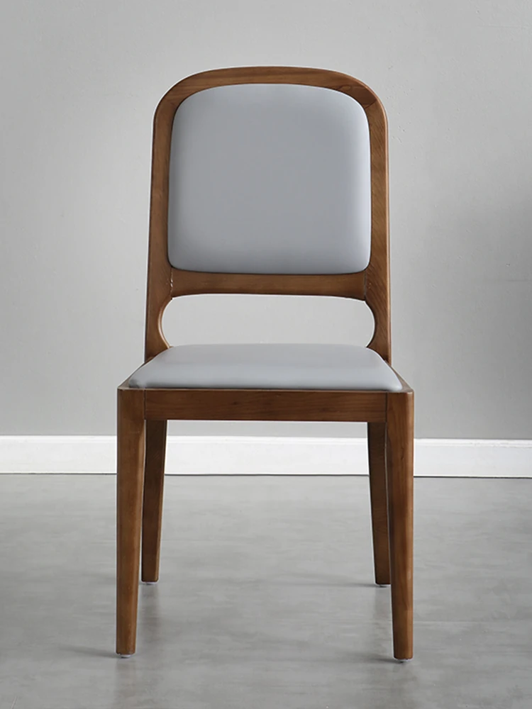Modern Minimalist Dining Chair for Home and Hotel – Nordic Style Solid Wood with Genuine Leather and Fabric Backrest, Creative and Trendy Design for Relaxation and Comfort